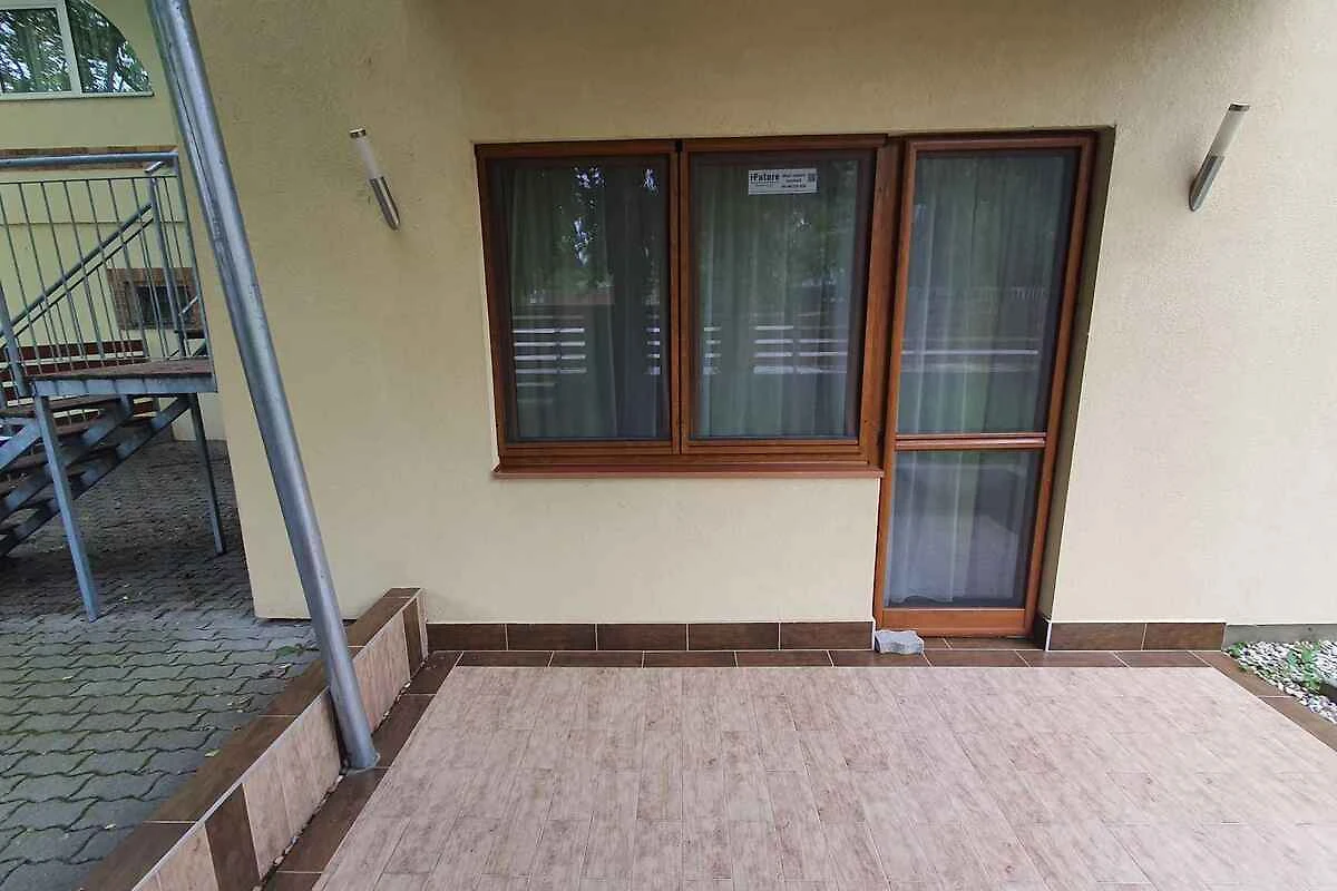 Siófok, Ortsteil Sóstó. Die Ferienwohnung befindet sich auf einem 210 qm grossen, geschlossenen Gartengrundstück mit Wiese, von einem Zaun begrenzt. Der Vermieter wohnt nicht im Haus oder auf dem Grundstück. Vermieter akzeptiert OTP Szép Kártya. Parkplatz (für 2 Pkws) auf dem Grundstück.
