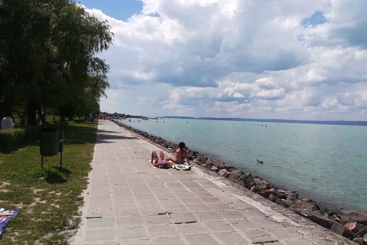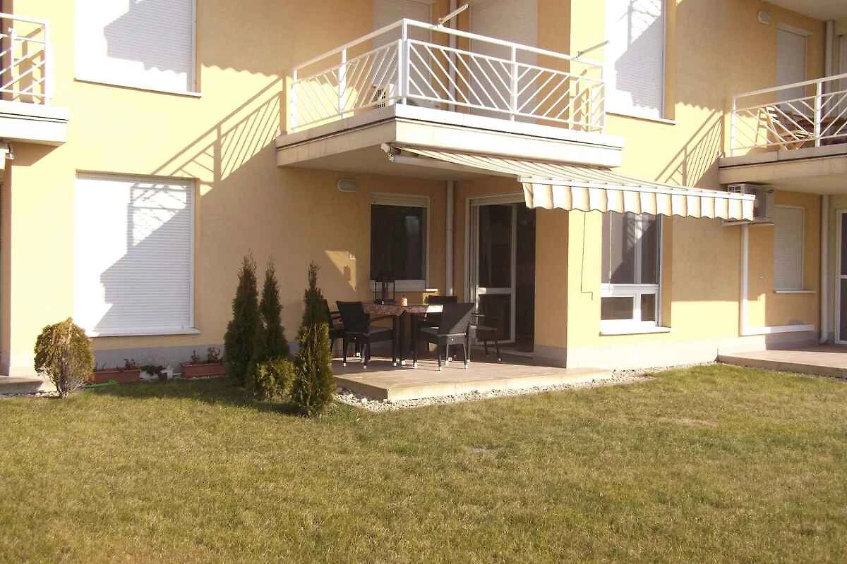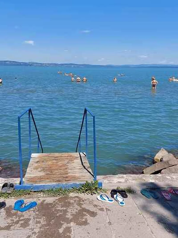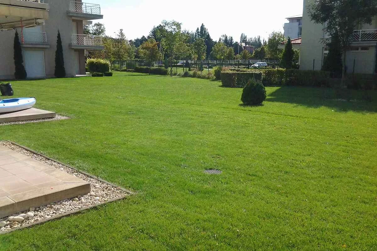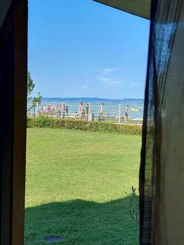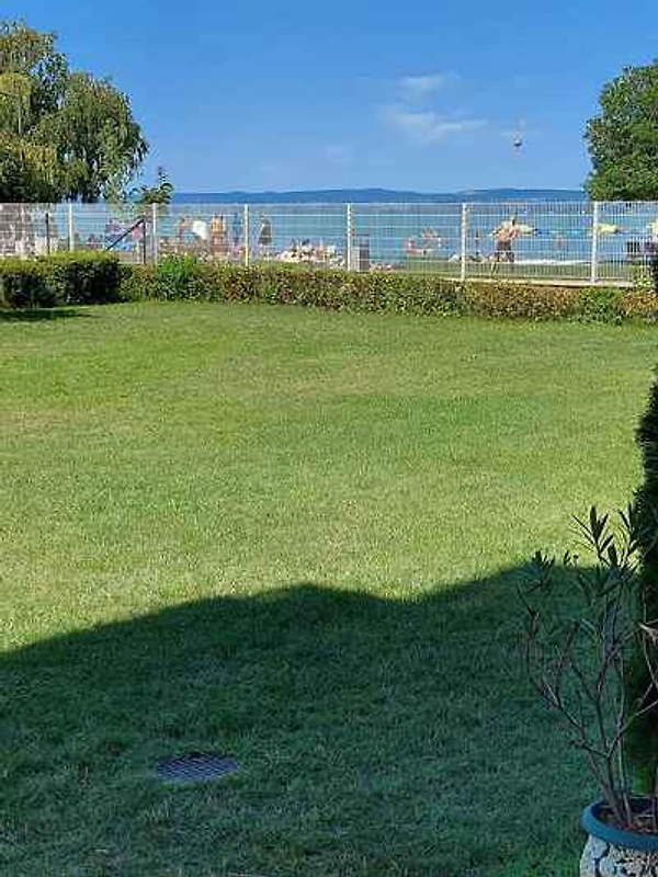 Siófok. Die Ferienwohnung befindet sich auf einem geschlossenen Gartengrundstück mit Wiese, Blumen, Sträuchern und Bäumen, von einem Zaun begrenzt. Der Vermieter wohnt nicht im Haus oder auf dem Grundstück. direkt am Ufer. Die Zufahrt erfolgt über eine Nebenstrasse (asphaltiert). Parkplatz (für 1 Pkw) auf dem Grundstück.