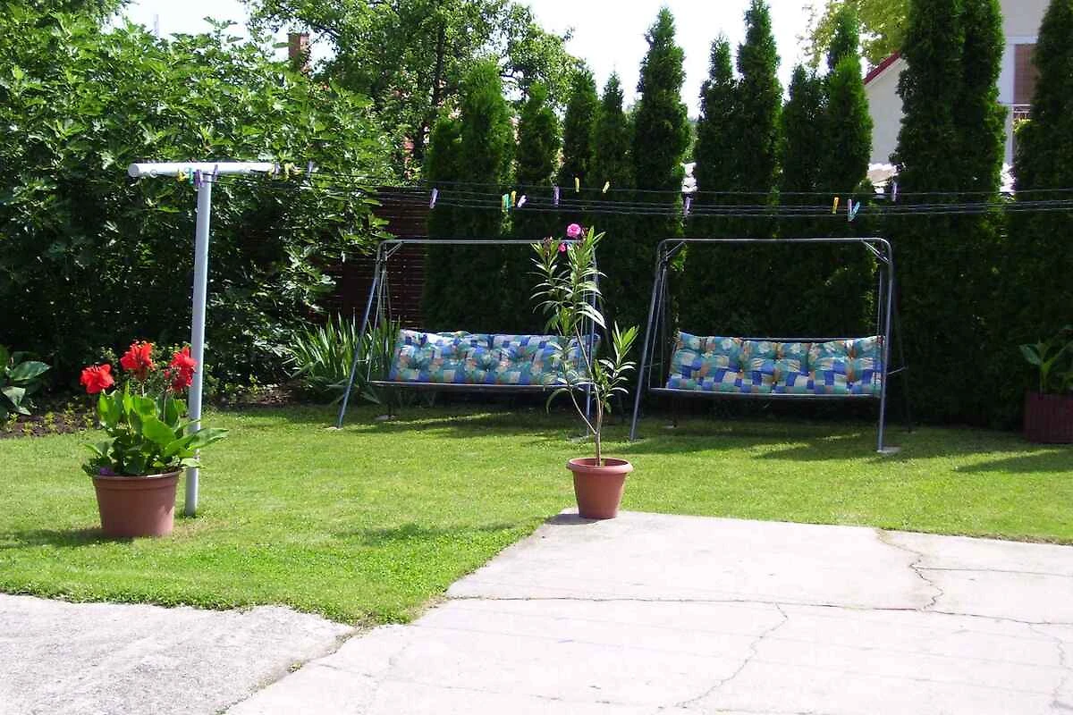 Siófok. Die Ferienwohnung befindet sich auf einem 600 qm grossen Gartengrundstück mit Wiese. Der Vermieter wohnt ständig im Haus, nutzt jedoch einen separaten Eingang. Die FerienWohnung BAL SIO 289 (9 Personen) befindet sich im Dachgeschoss. Die Zufahrt erfolgt über eine Nebenstrasse. Parkplatz auf dem Grundstück.