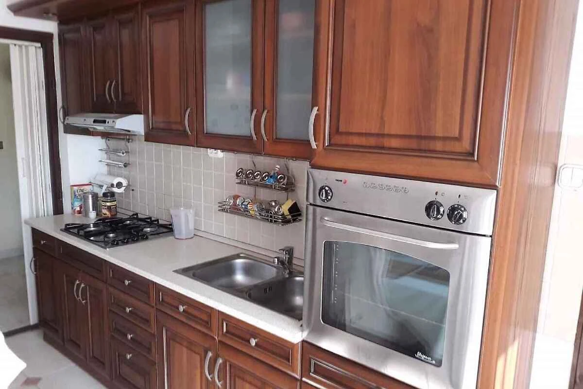 Wohnzimmer mit Sitzecke und TV. 2 Schlafzimmer jeweils mit 1 Doppelbett. Schlafzimmer mit 1 Doppelbett und 1 Zusatzbett. Küche mit Gasherd (4 Flammen), Backofen, Kühlschrank, Mikrowelle, Kaffeemaschine und Zugang zur Terrasse. Bad mit Badewanne. Separates WC mit WC.