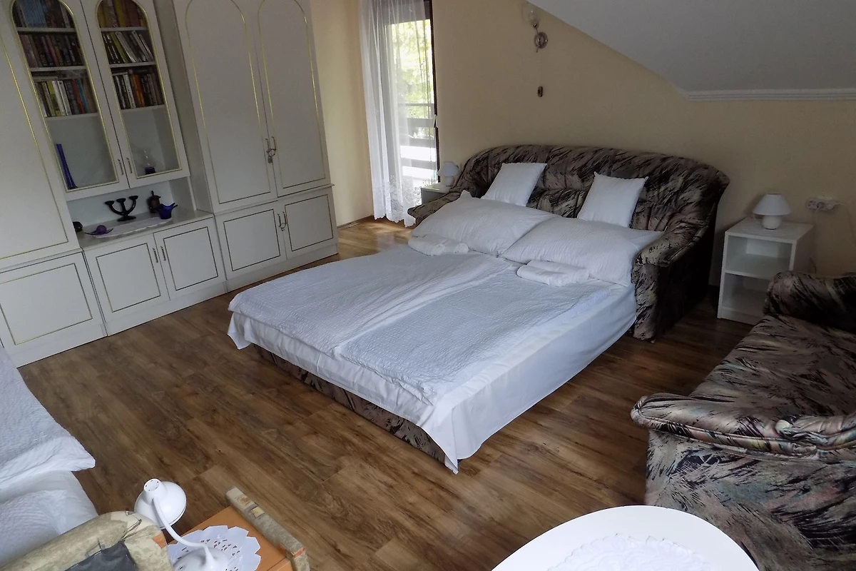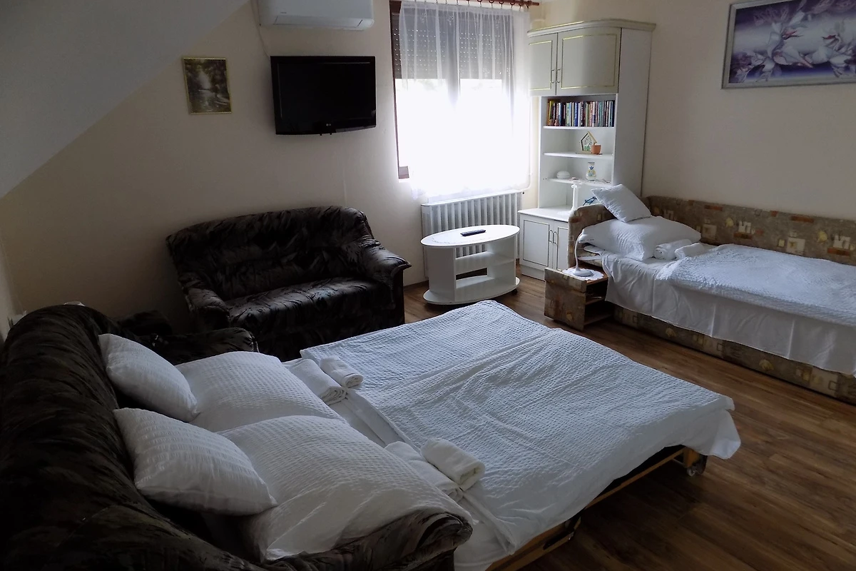 Siófok. Die Ferienwohnung befindet sich auf einem 150 qm grossen, geschlossenen Gartengrundstück mit Wiese, Blumen, Sträuchern und Bäumen, von einem Zaun begrenzt. Der Vermieter wohnt ständig in einem separaten Gebäude auf dem Grundstück. SCHÖNE Karte. Anreise: zwischen 15:00 und 18:00 Uhr Abreise um 9. Grundstück ist zur gemeinsamer Nutzung. Die Zufahrt erfolgt über eine Nebenstrasse (asphaltiert). Parkplatz (für 2 Pkws) auf dem Grundstück.