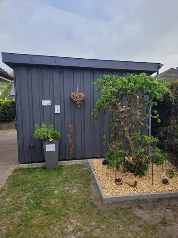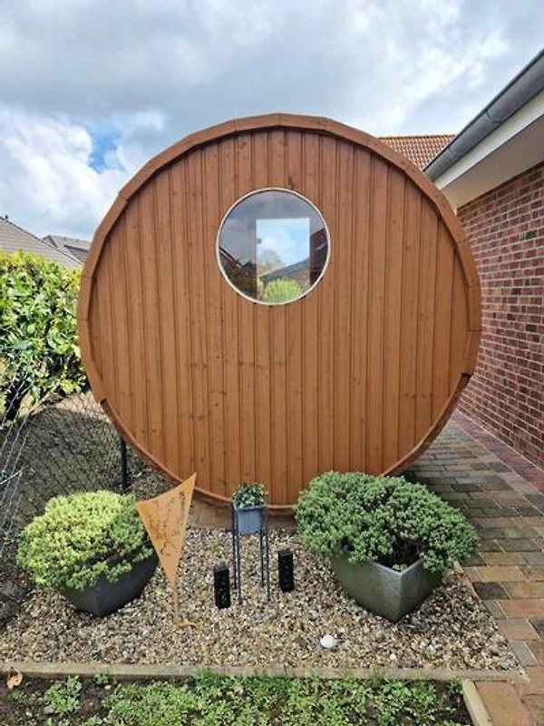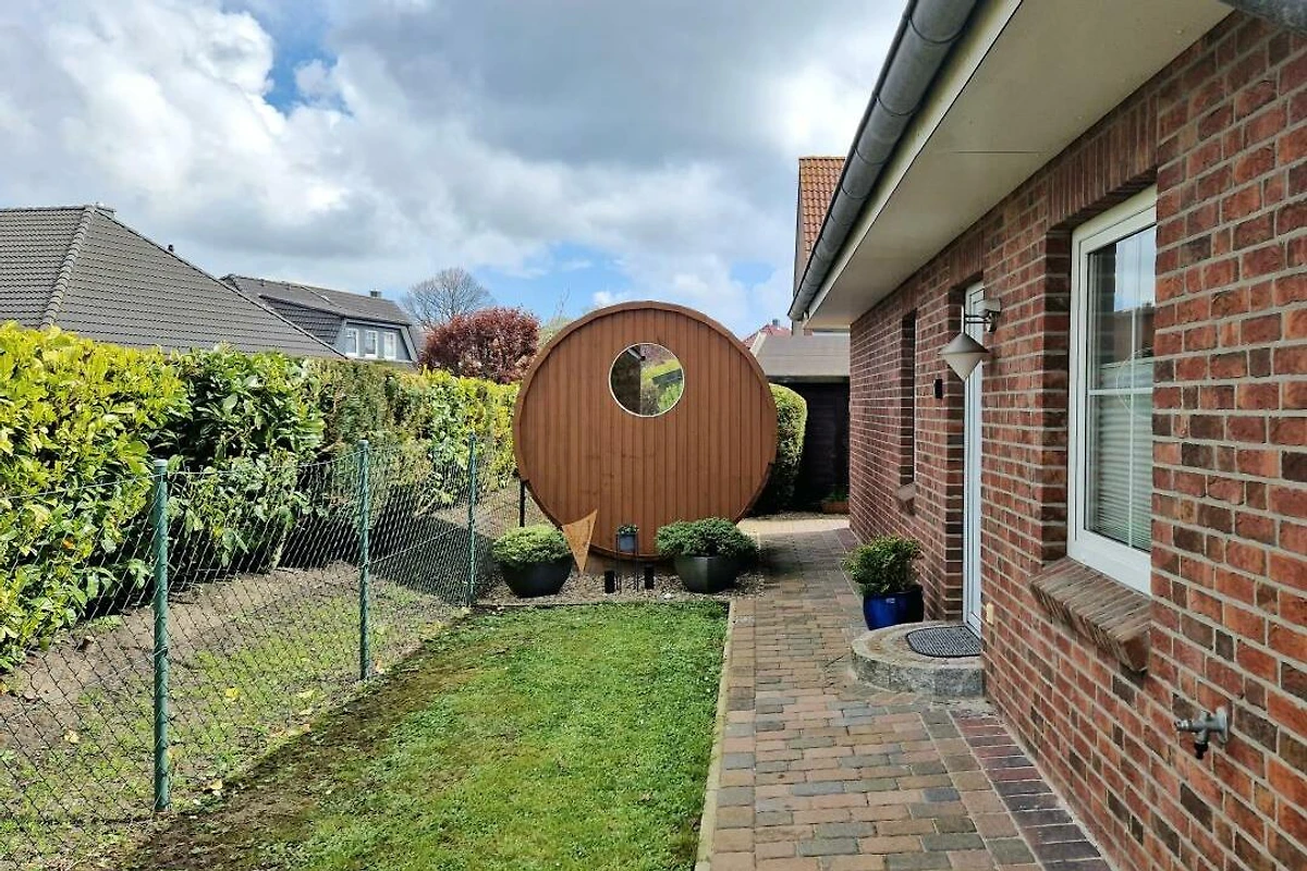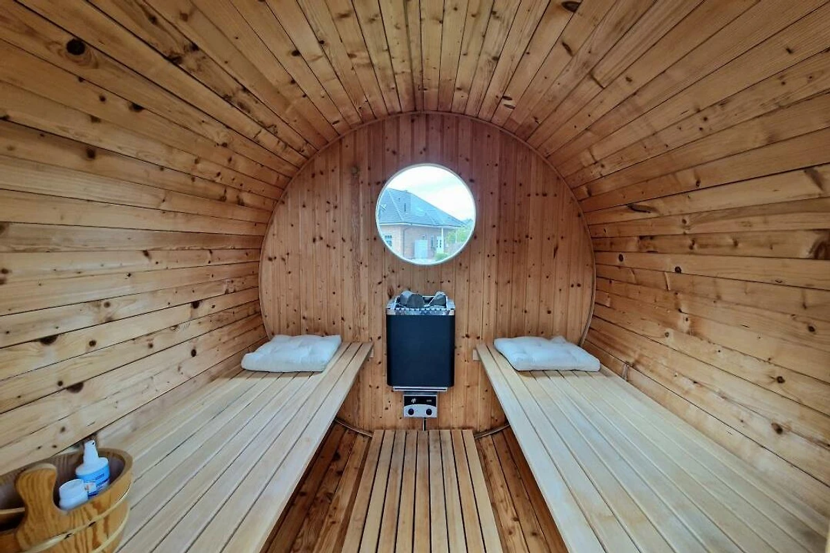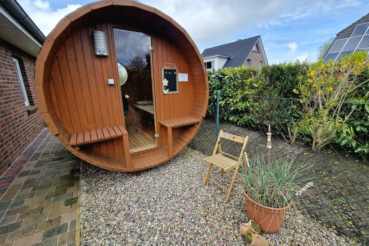 Zusätzlich verfügt die Ferienwohnung seit Sommer 2018 über eine Fass-Sauna im Gartenbereich, die gegen Gebühr genutzt werden kann.