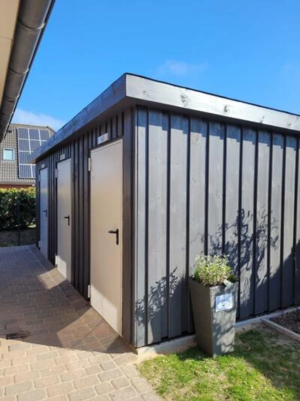 Für jede Einheit steht ein separater und abschliessbarer Fahrradschuppen mit Lademöglichkeit zur Verfügung.