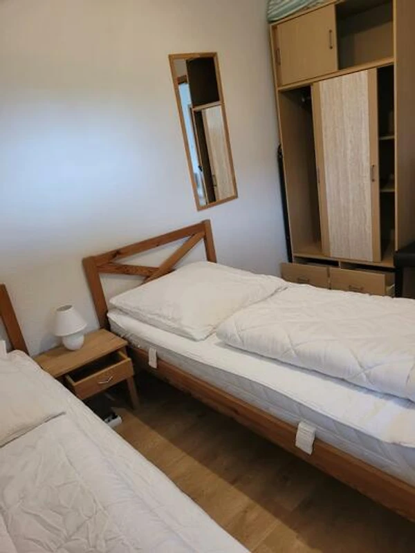 Sie besteht aus zwei Schlafzimmern - das Elternschlafzimmer ist mit einem Doppelbett (160 x 200 cm) und das Kinderzimmer mit zwei Einzelbetten (90 x 200 cm) ausgestattet.