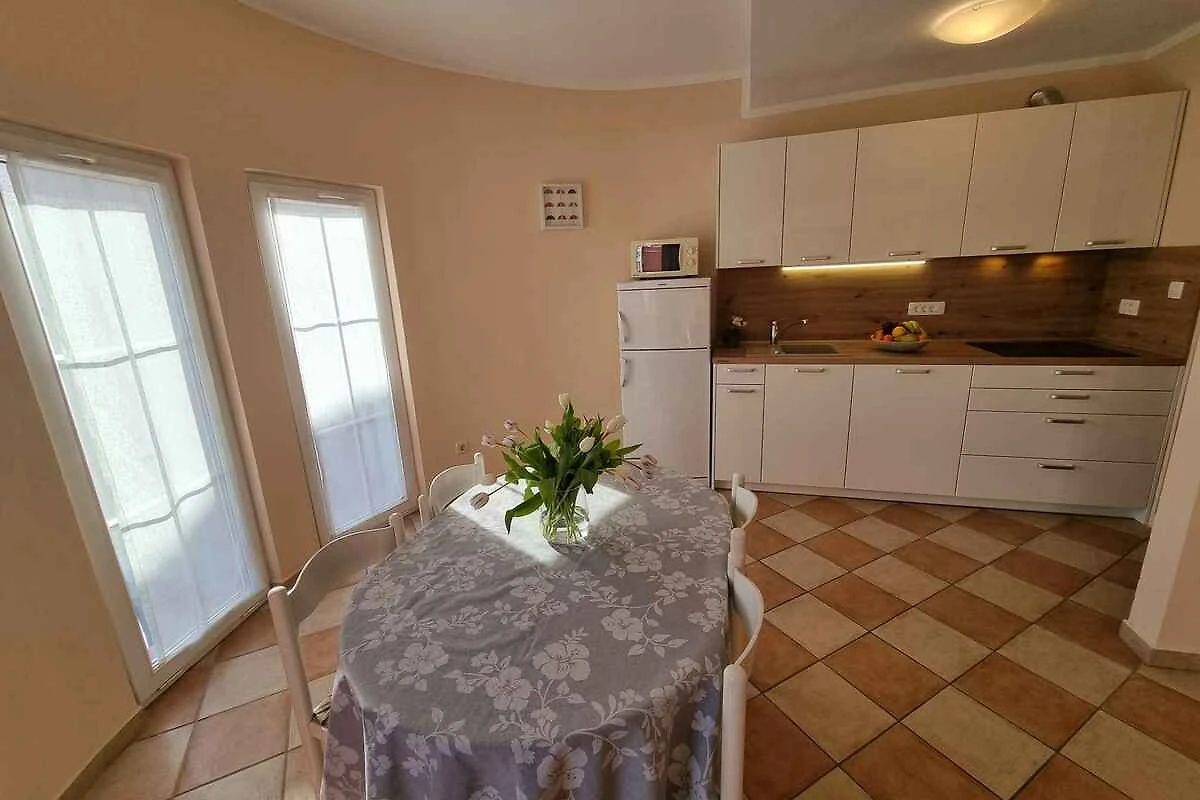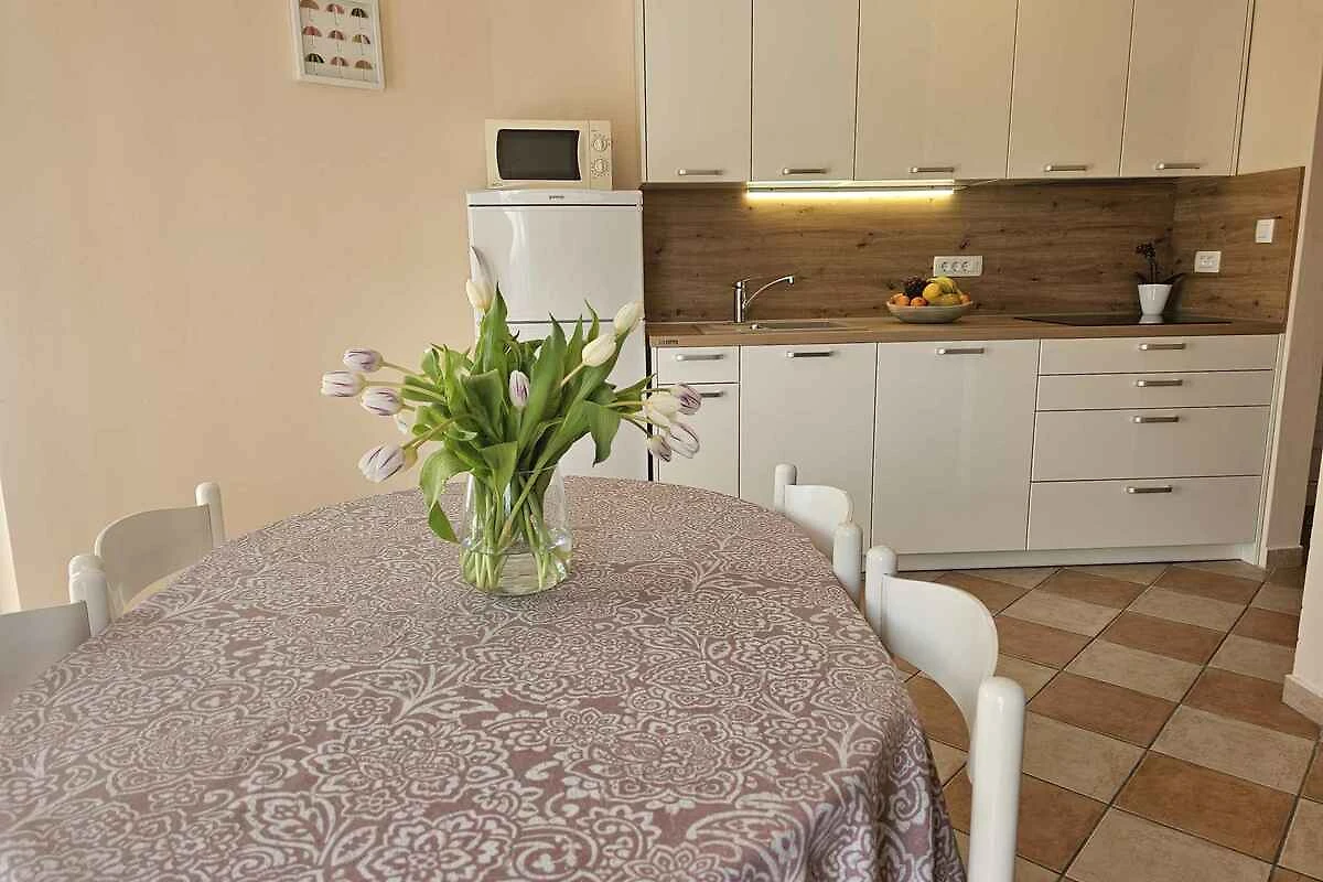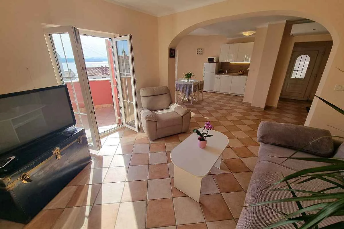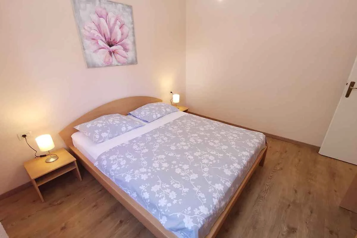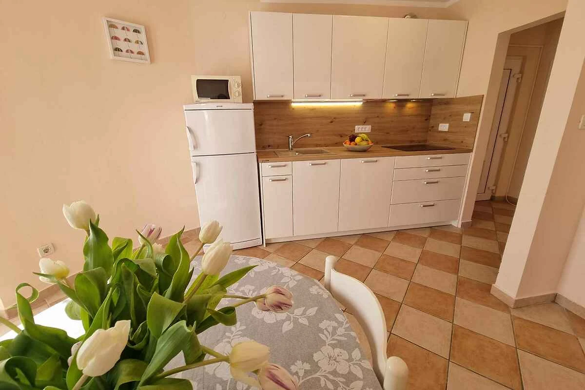 Crikvenica. Die Ferienwohnung befindet sich auf einem offenen Gartengrundstück mit Bäumen. Der Vermieter wohnt nur zeitweise im Haus, nutzt jedoch einen separaten Eingang. Die Zufahrt erfolgt über eine Nebenstrasse (asphaltiert). Parkplatz auf der Strasse vor dem Haus.