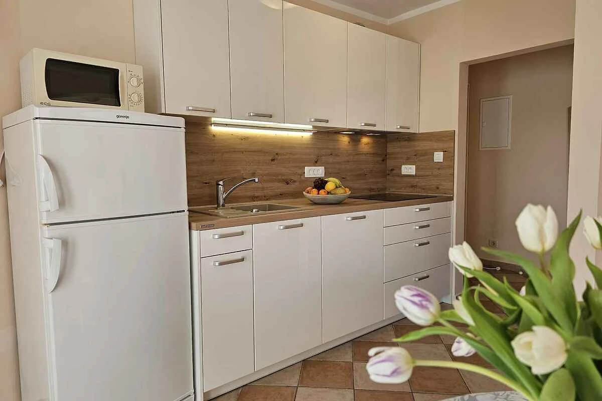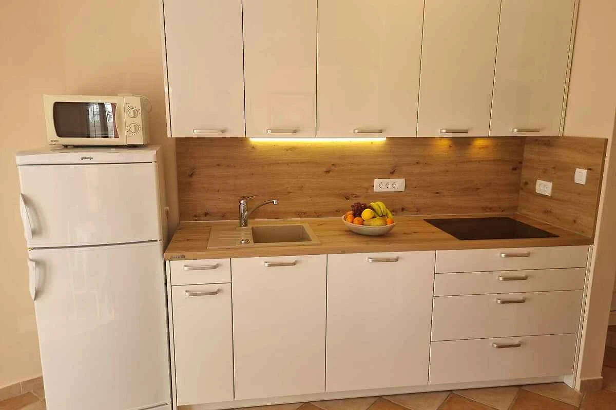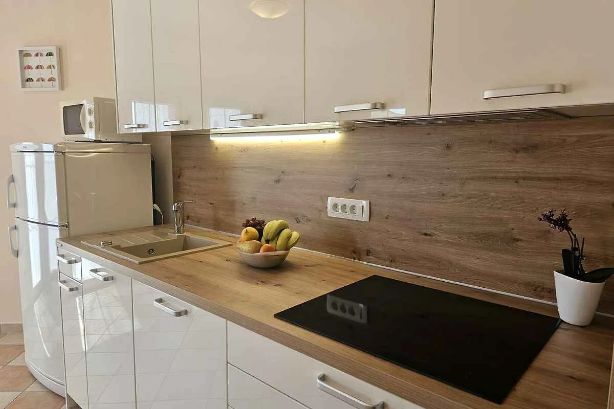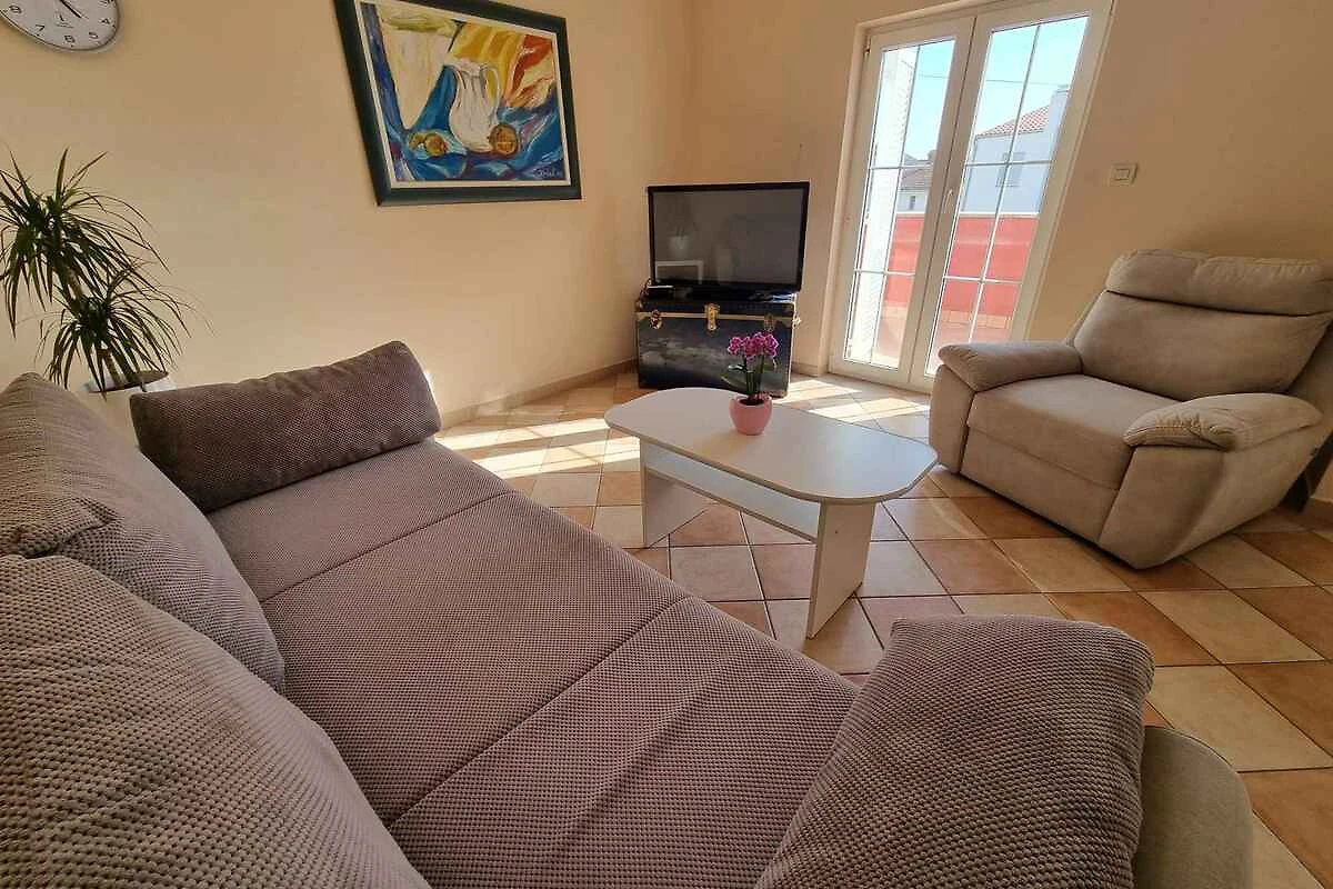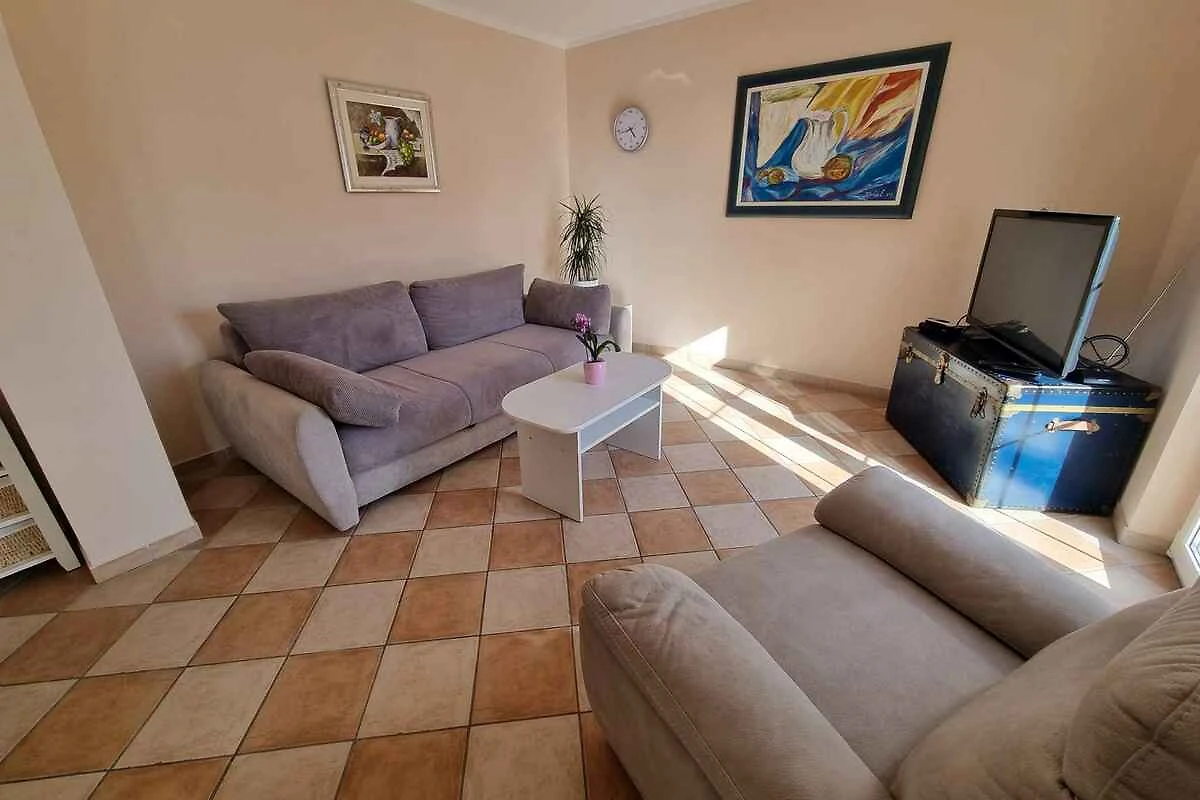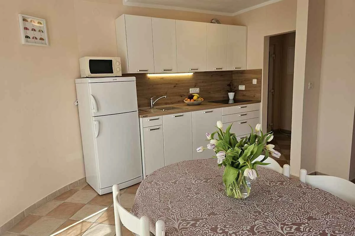 Crikvenica. Die Ferienwohnung befindet sich auf einem offenen Gartengrundstück mit Bäumen. Der Vermieter wohnt nur zeitweise im Haus, nutzt jedoch einen separaten Eingang. Die Zufahrt erfolgt über eine Nebenstrasse (asphaltiert). Parkplatz auf der Strasse vor dem Haus.
