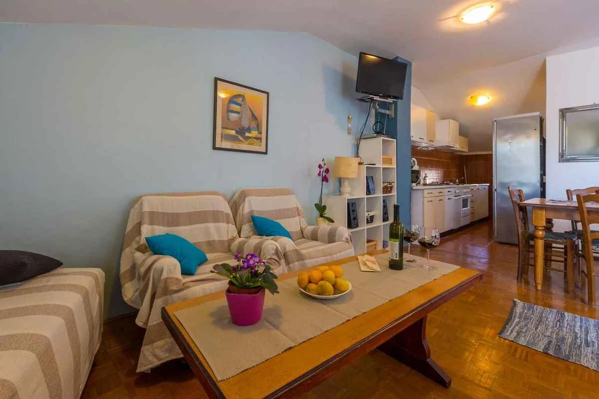 Crikvenica. Der Vermieter wohnt im Haus. Hübsche Wohnung in Crikvenica, direkt im Stadtzentrum. Direkt vor dem Haus ist ein Stadtpark der auch nur einige Meter vom Meer entfert ist. Einkaufsmöglichkeiten und Restaurants erreichen Sie innerhalb weniger Gehminuten. Die Zufahrt erfolgt über einen Weg (asphaltiert). Parkplatz (für 1 Pkw) auf der Strasse vor dem Haus. Bei Ankunft reserviert der Hausbesitzer einen Parkplatz vor dem Haus. Es ist ein öffentlicher Parkplatz und beim Wegfahren muss dann ein freier Parkplatz in der Umgebung gesucht werden. In 50m Entfernung gibt es kostenpflichtige Parkplätze für die man eine Tageskarte kaufen kann.