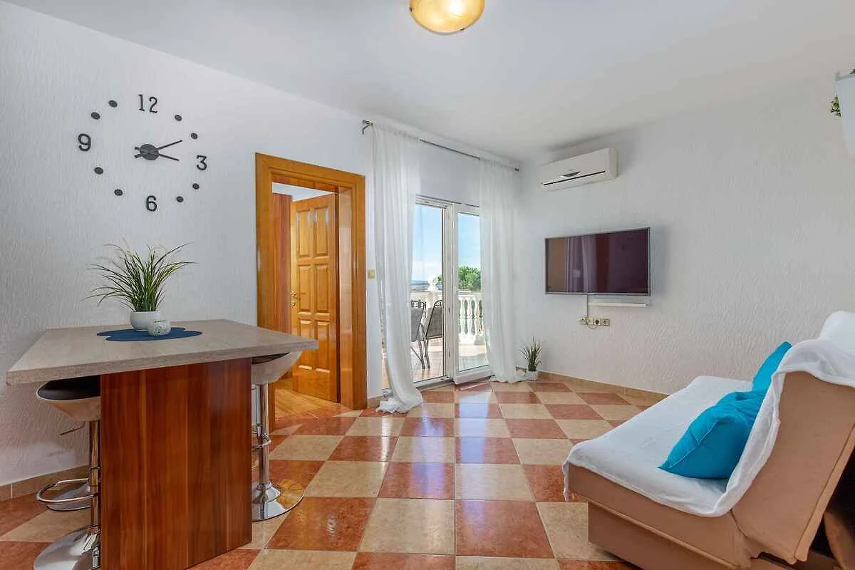 Dramalj. Die Ferienwohnung befindet sich auf einem 1000 qm grossen, geschlossenen Grundstück mit Blumen und Sträuchern. Der Vermieter wohnt nicht im Haus oder auf dem Grundstück. Die Zufahrt erfolgt über eine Nebenstrasse (asphaltiert). Parkplatz (für 5 Pkws) auf dem Grundstück und der Strasse vor dem Haus.