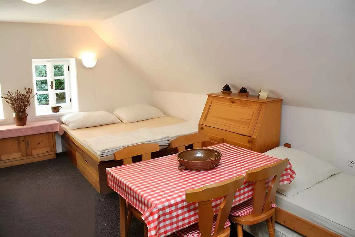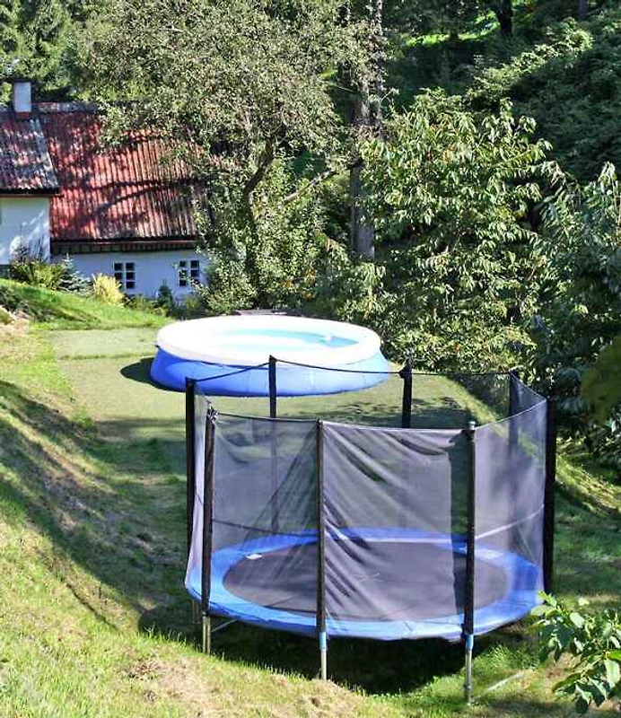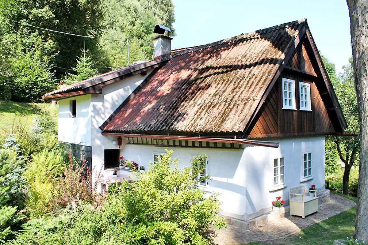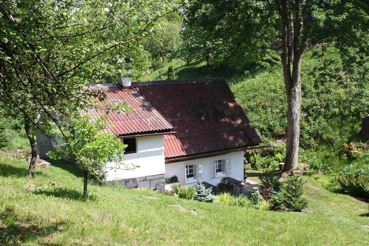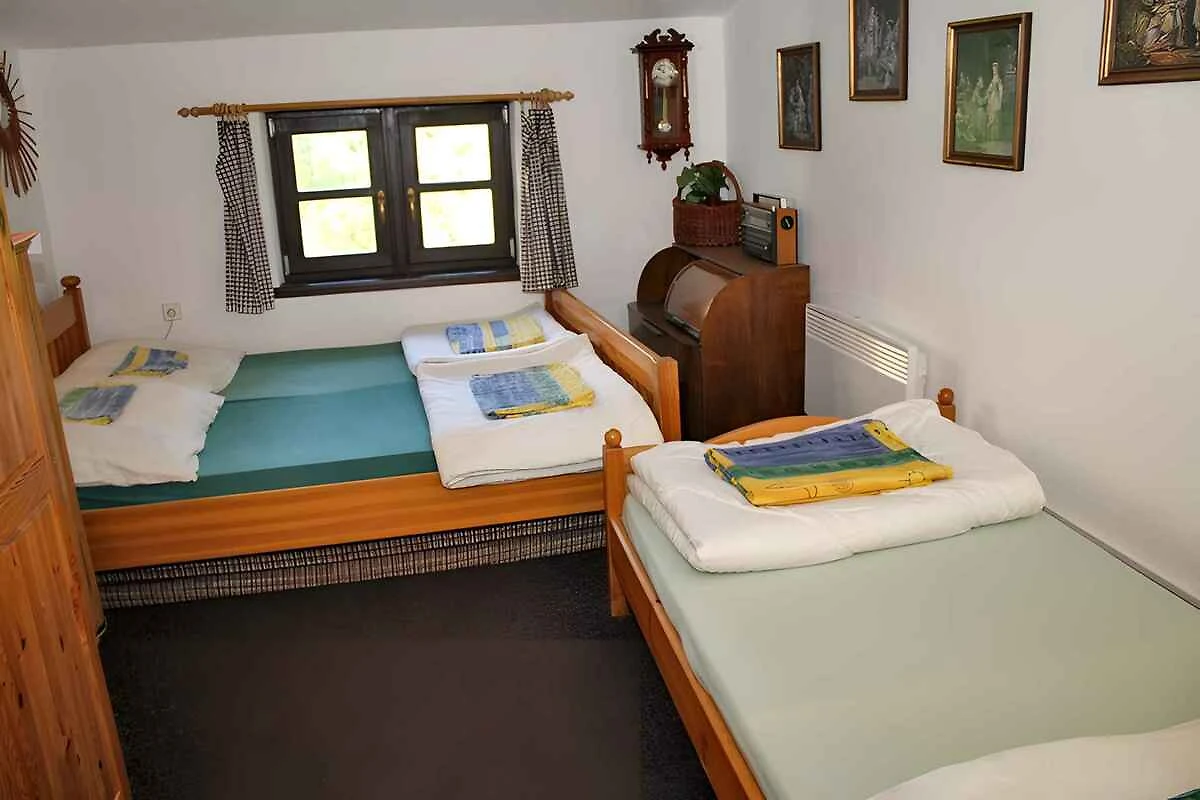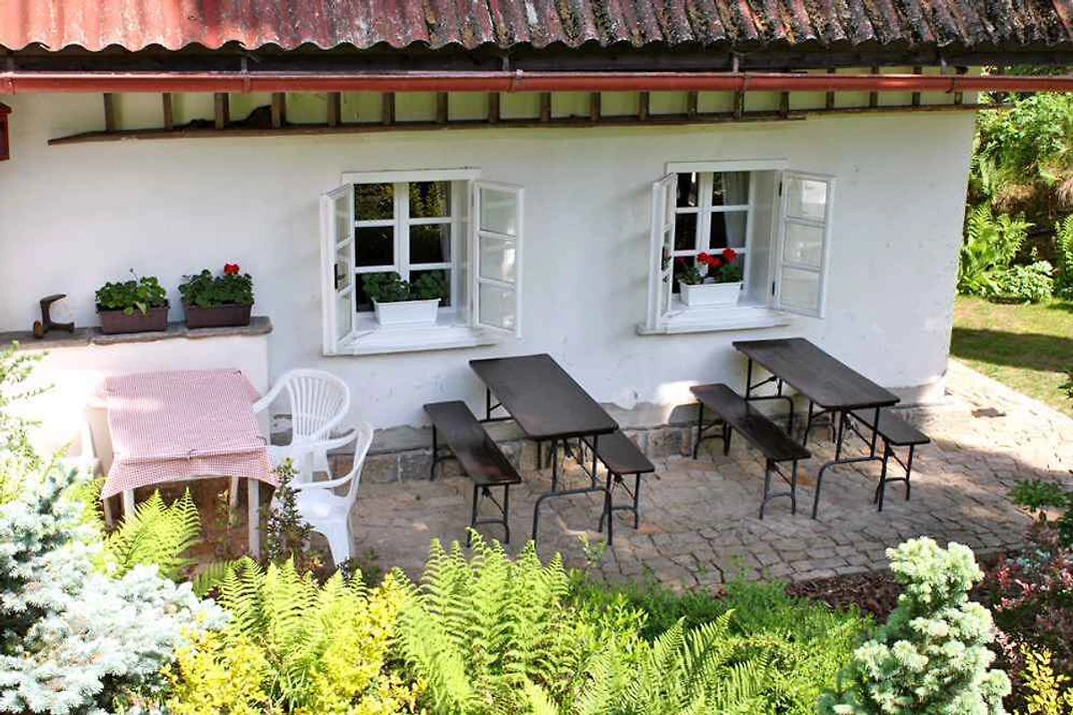 Hronov, Ortsteil Chlivce, 500 mNN. Das Ferienhaus befindet sich auf einem offenen Gartengrundstück mit Sträuchern und Bäumen. Der Vermieter wohnt nicht im Haus oder auf dem Grundstück. Das Ferienhaus liegt in einem kleinen Dorf in der Nähe des Waldes und in der Nähe des Baches, in der Nähe des Landschaftsschutzgebietes der Adrspach-Teplicer Felsen. Parkplatz 20 m vom Haus.