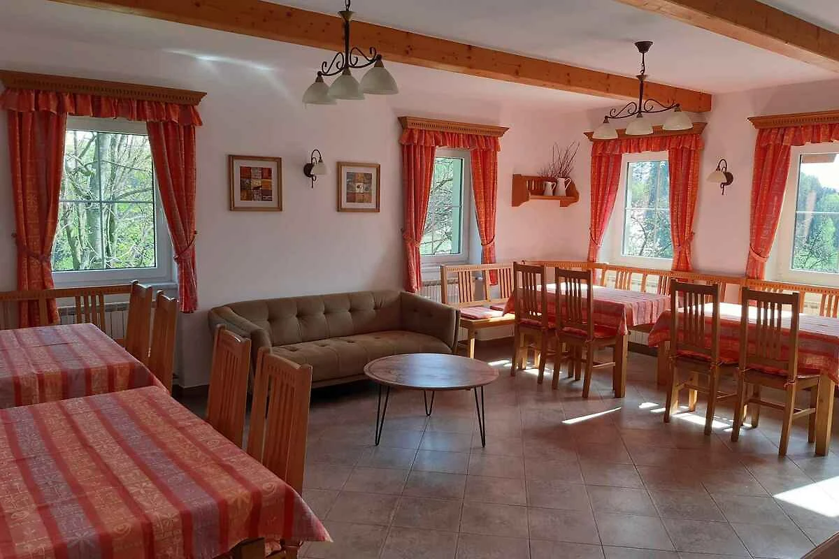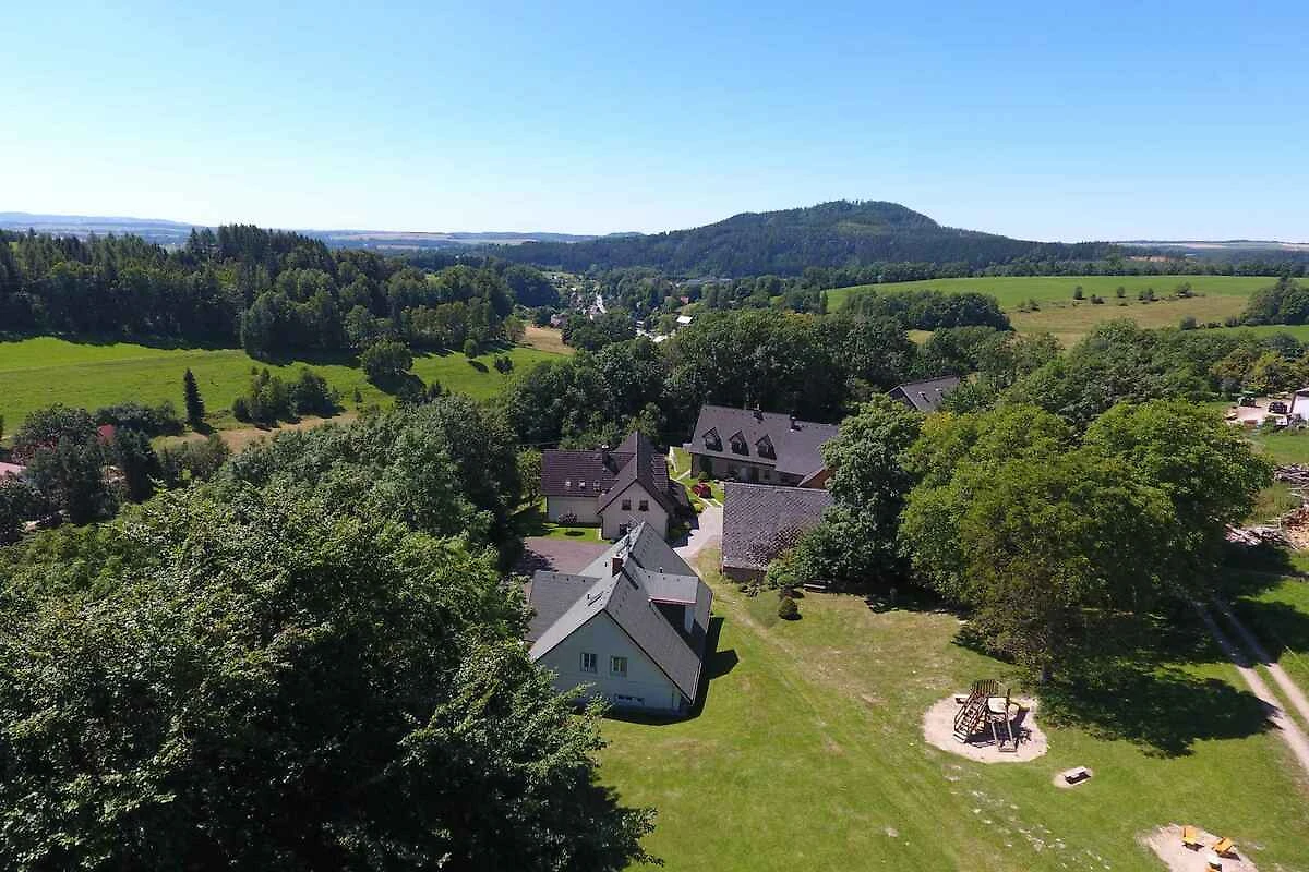 Pěkov, 560 mNN. Das Ferienhaus befindet sich auf einem 1500 qm grossen Gartengrundstück. Der Vermieter wohnt nur zeitweise in einem separaten Gebäude auf dem Grundstück. Ferienhaus befindet sich in einer abgelegenen Gegend in der Nähe von Adersbach entfernt. Die Zufahrt erfolgt über eine Nebenstrasse (asphaltiert, Länge 600 m). Im Winter sind Schneeketten empfohlen. Parkplatz (für 6 Pkws) auf dem Grundstück.