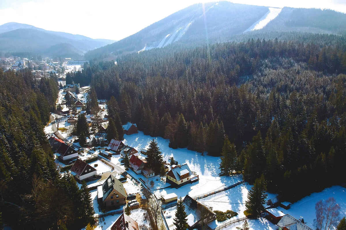 Einkauf 400 m (im Winter 400 m), Restaurant 300 m, Ortszentrum 1500 m. Harrachov: Arzt 1000 m, Bahnhof 1500 m, Apotheke 1,8 km, Hallenbad, Sauna, Kino jeweils 2 km. Diskothek 800 m. Bahnlinie 800 m. Hauptstrasse 300 m. Kinderspielplatz 500 m. Bierbad 600 m. Bobbahn 500 m. Pumptrack 2000 m. Im Sommer: Freibad 2 km in Harrachov. Harrachov: Golf 1500 m und Tennis, Minigolf jeweils 2 km. Sightseeing-Zug 800 m. Im Winter: Skilift 700 m in Harrachov. Skigebiet 1500 m in Harrachov (Harrachov). Skibus 150 m. Harrachov: Loipe 300 m, Eislaufen 500 m, Rodelbahn 600 m und Skiverleih, Skischule jeweils 700 m.