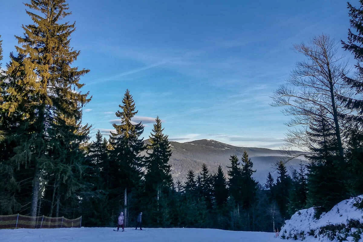 Harrachov, Ortsteil Nový Svět, 700 mNN. Das Studio befindet sich auf einem offenen Gartengrundstück mit Wiese, Blumen und Sträuchern. Der Vermieter wohnt ständig im Haus. In unmittelbarer Nähe besteht im Winter die Möglichkeit zum Rodeln und Bobfahren. Das Haus liegt an einem wunderschönen Ort mit Blick auf den Teufelsberg, an der Grenze zwischen dem Riesengebirge und dem Isergebirge. Es liegt nur 1 km vom Zentrum von Harrachov, der Standseilbahn und den Langlaufloipen entfernt. Weitere Langlaufloipen befinden sich in unmittelbarer Nähe des Gebäudes - ein Biathlonrad oder es besteht die Möglichkeit, die gespurten Loipen am Bahnhof zu betreten. Es ist 800 m vom Haus entfernt und führt über eine regelmässige direkte Zugverbindung Liberec - Szklarszka Poreba (Polen). Die Zufahrt erfolgt über eine Nebenstrasse (asphaltiert, Länge 300 m). Parkplatz (für 4 Pkws) auf dem Grundstück.