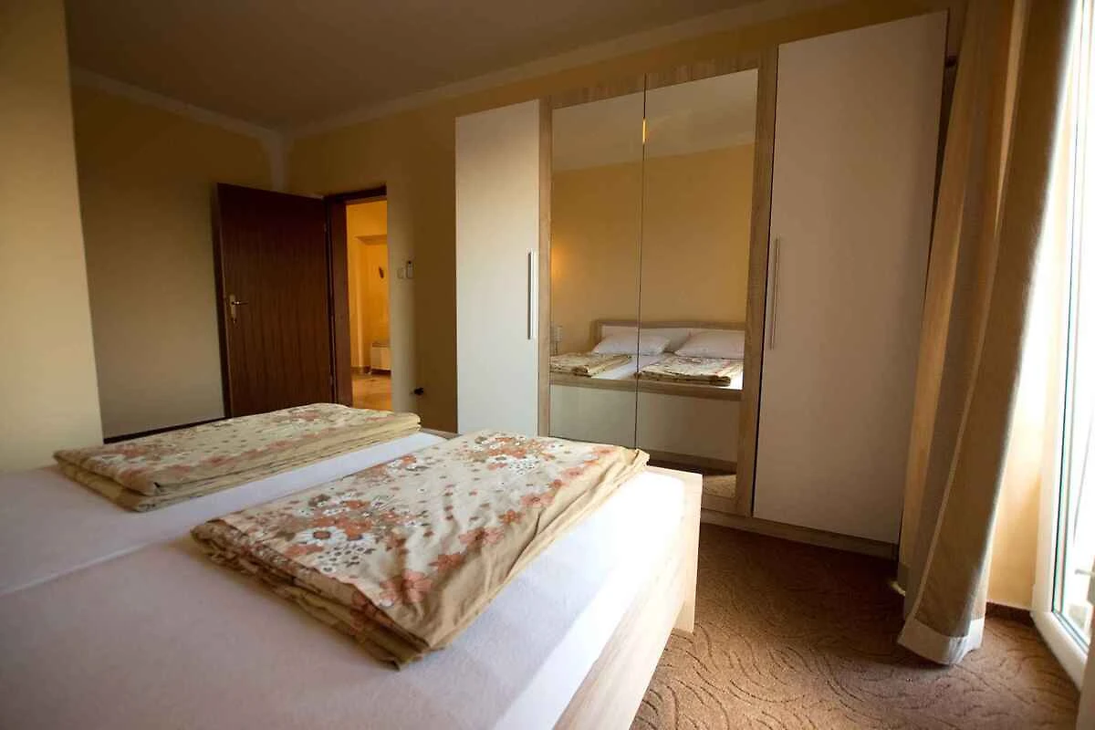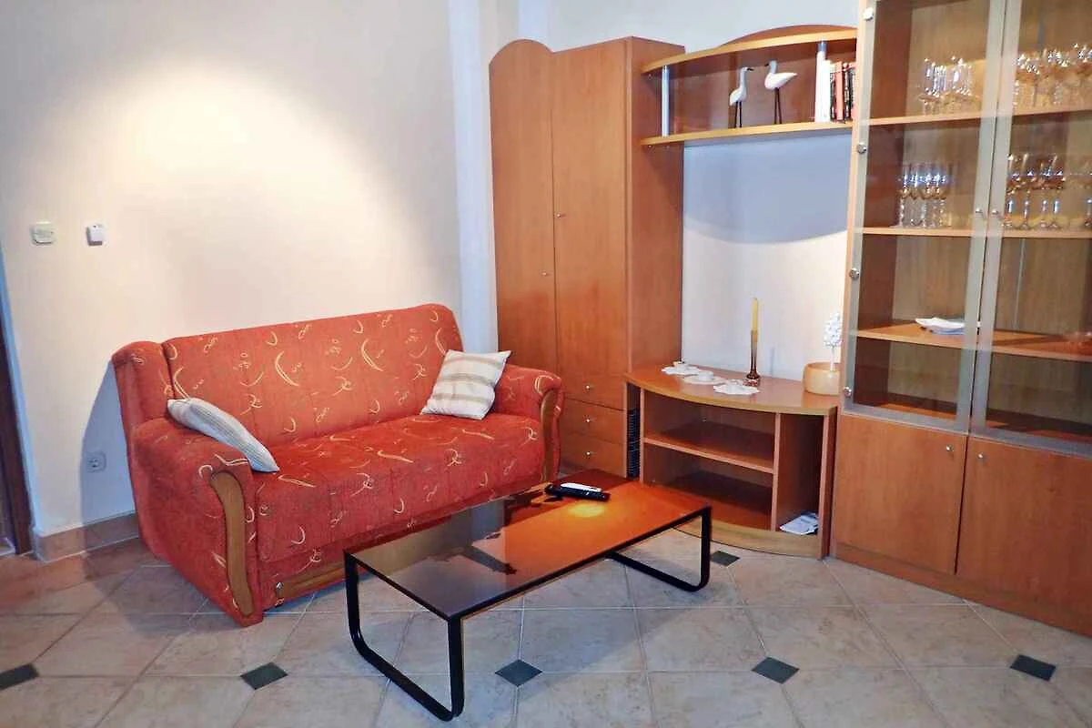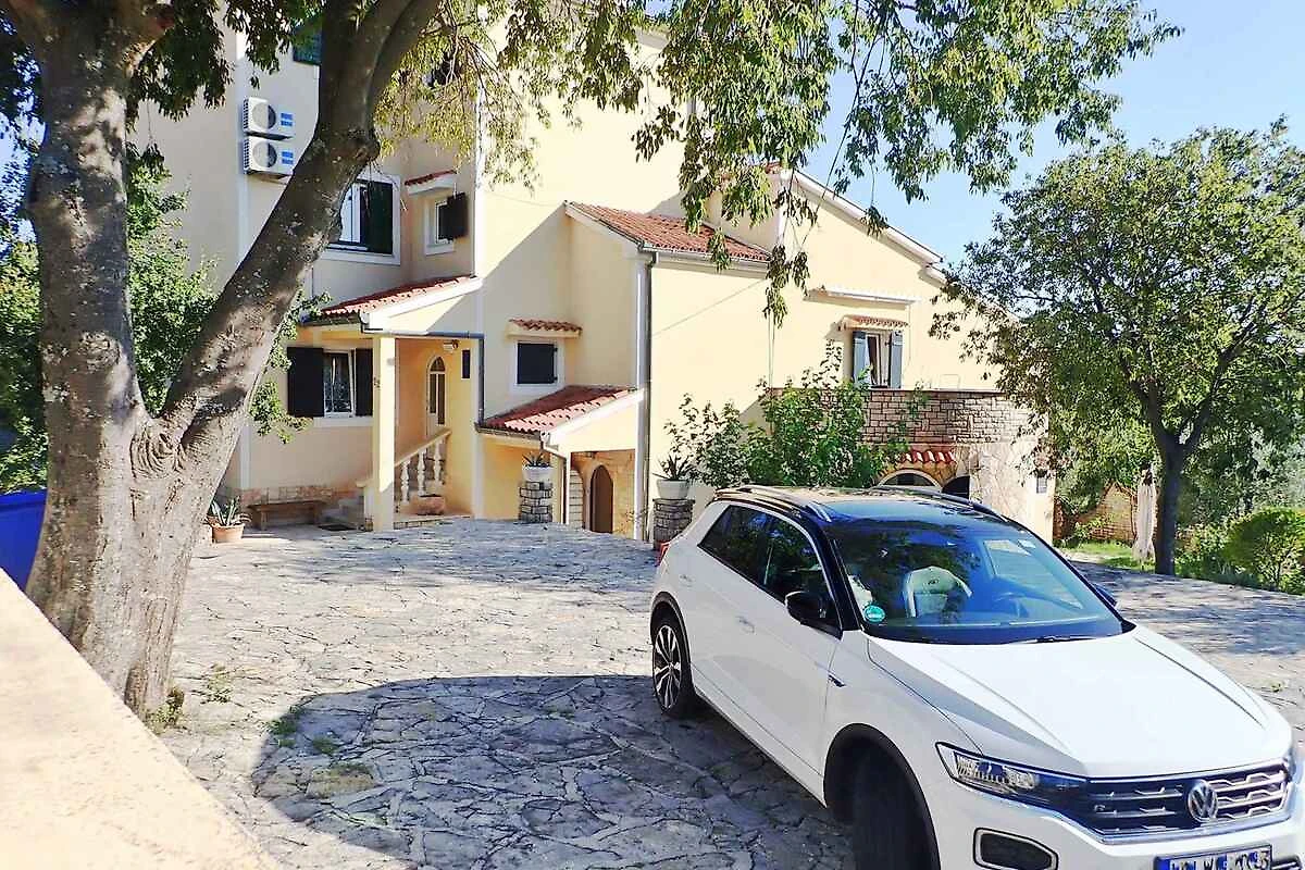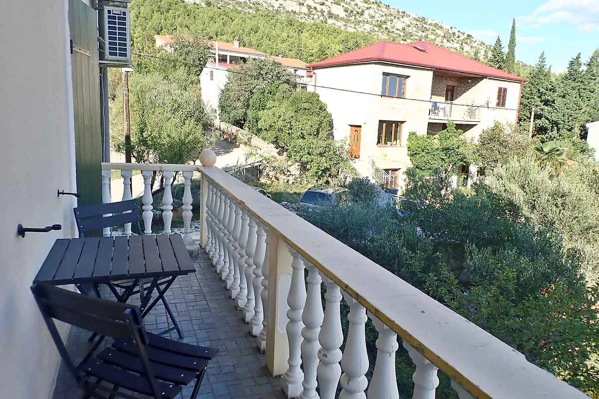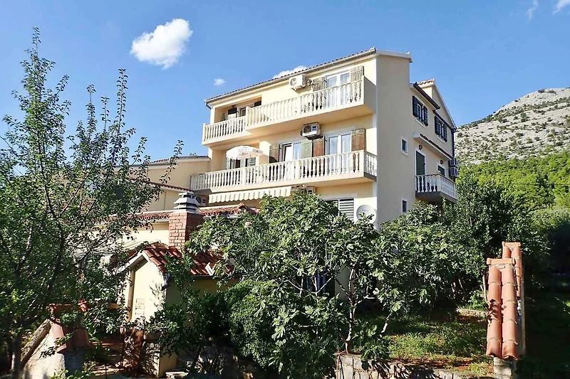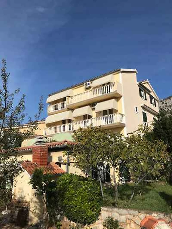 Starigrad-Paklenica, Ortsteil Starigrad. Die Ferienwohnung befindet sich auf einem 500 qm grossen, geschlossenen Gartengrundstück mit Blumen und Bäumen, von einer Hecke begrenzt. Der Vermieter wohnt ständig im Haus, nutzt jedoch einen separaten Eingang. Eine angenehme Atmosphäre und Ruhe für den Aufenthalt mit grösseren Familien oder Freunden machen diese Einrichtung zu etwas Besonderem. Die Zufahrt erfolgt über eine Nebenstrasse (asphaltiert, Länge 200 m). Parkplatz (für 6 Pkws) auf dem Grundstück.