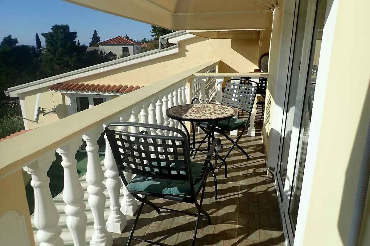 Die Ferienwohnung befindet sich in einem 1995 erbauten Apartementhaus, wurde im Jahr 2014 renoviert und ist modern eingerichtet. Das Grundstück liegt in einem Wohngebiet, im Ortszentrum. Auch wegen des Ausblicks vom Grundstück auf das Meer und der ruhigen und sonnigen Lage ist das Domizil beliebt. Zur gemeinsamen Nutzung stehen zur Verfügung: Sonnenschirm, Grillmöglichkeit, Terrasse und Gartenmöbel.
