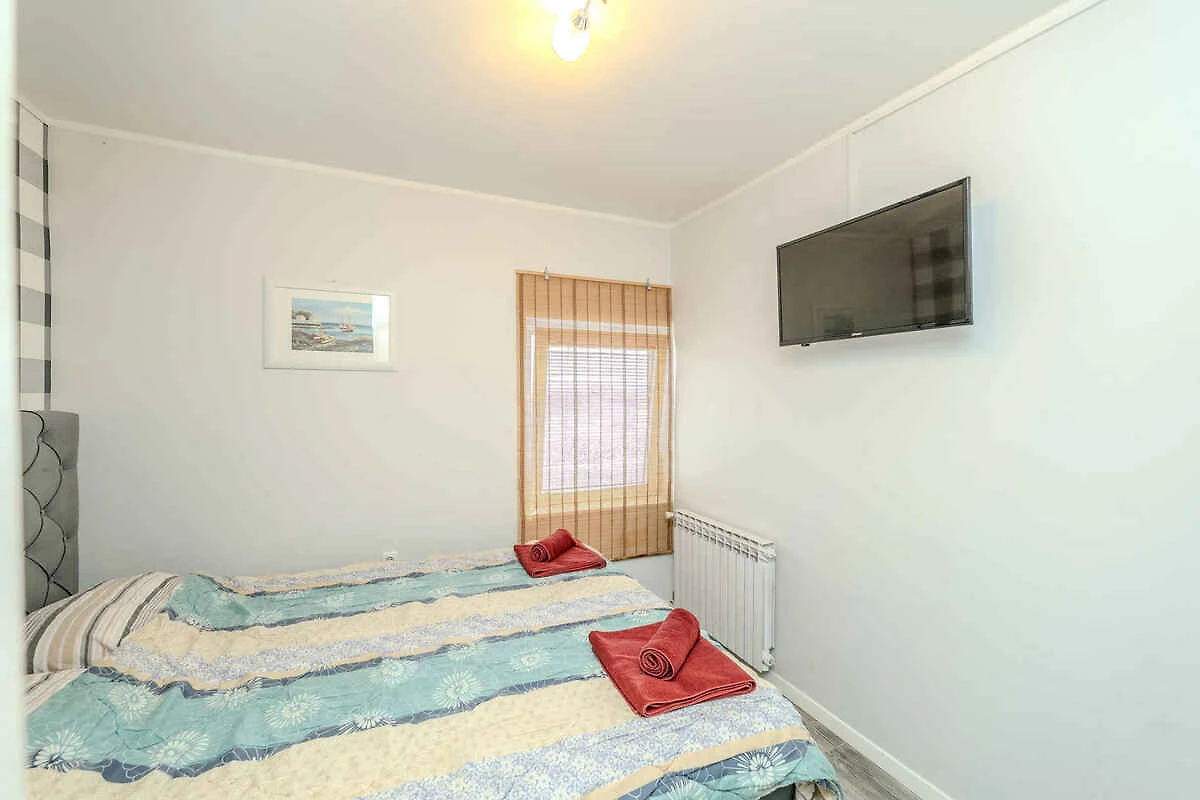 Sukošan. Die Ferienwohnung befindet sich auf einem 1200 qm grossen, geschlossenen Gartengrundstück mit Blumen, Sträuchern und Bäumen. Der Vermieter wohnt ständig im Haus, nutzt jedoch einen separaten Eingang. Die Zufahrt erfolgt direkt von der Hauptstrasse (asphaltiert). Parkplatz auf dem Grundstück.