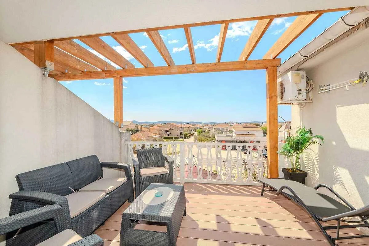 Die Ferienwohnung befindet sich in einem Apartementhaus, wurde im Jahr 2010 renoviert und ist modern und im typischen Landesstil eingerichtet. Das Grundstück liegt in einem Wohngebiet. Auch wegen der sonnigen Lage ist das Domizil beliebt. Zur gemeinsamen Nutzung stehen zur Verfügung: Sonnenschirm, Sonnenliege, Gartendusche, Grillmöglichkeit, Terrasse, Pavillon, Gartenmöbel und Hollywood-Schaukel.