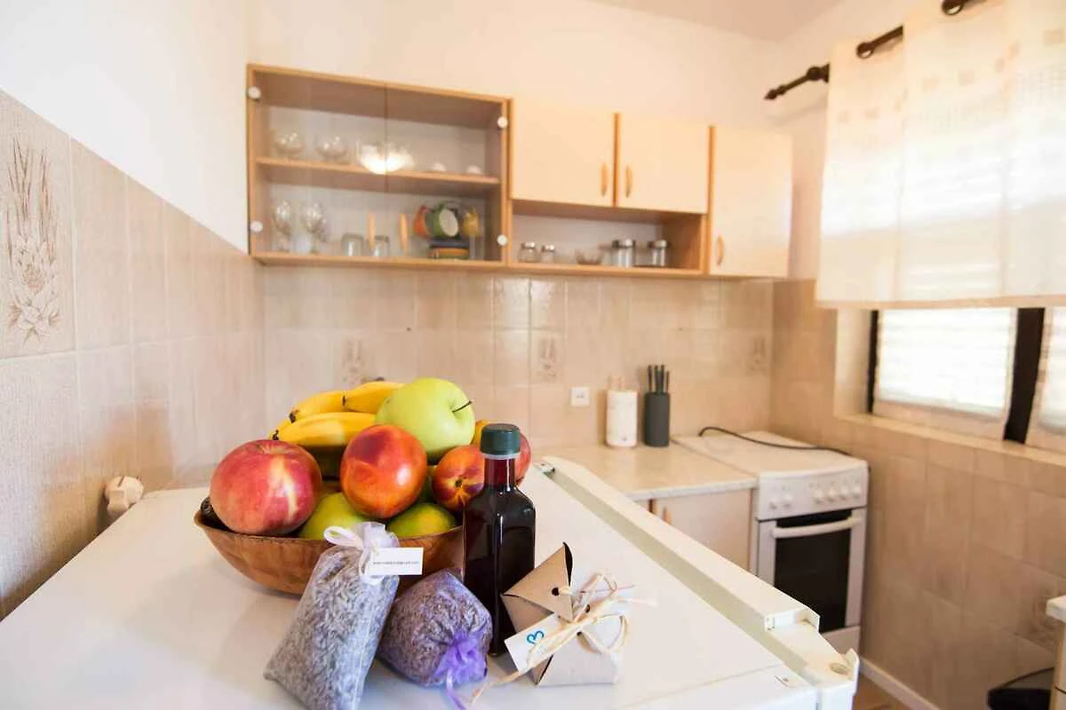 Einkauf 50 m, Restaurant 350 m, Ortszentrum 1,8 km. Biograd na Moru: Diskothek 1000 m, Kino 1200 m, Arzt, Apotheke, Bank jeweils 2 km. Flughafen 30 km. Bahnhof in Zadar 30 km. Im Sommer: Adria 250 m in Biograd na Moru (Strand 250 m in Biograd na Moru mit Kies). Biograd na Moru: Tauchen 250 m und Tennis 800 m.