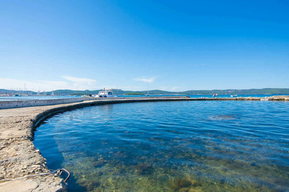 Einkauf 180 m, Restaurant 1400 m, Ortszentrum 800 m. Im Sommer: Bademöglichkeit 80 m in Biograd naMoru (Strand mit Kies).