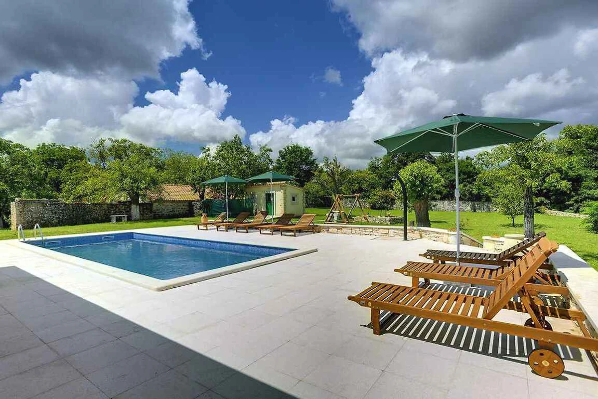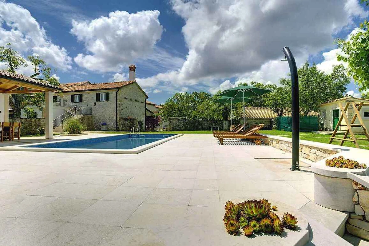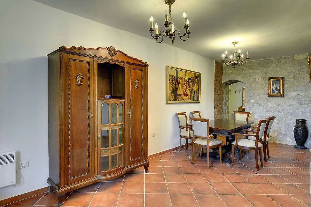 Einkauf 3 km, Restaurant 3 km, Ortszentrum 7 km. Pula: Flughafen 20 km und Bahnhof 30 km. Arzt, Apotheke jeweils 9 km in Žminj. Im Sommer: Adria 12 km in Rebići (Strand 12 km in Rebići mit Wiese, Kies, Steinen, Felsen und Badeplateaus).