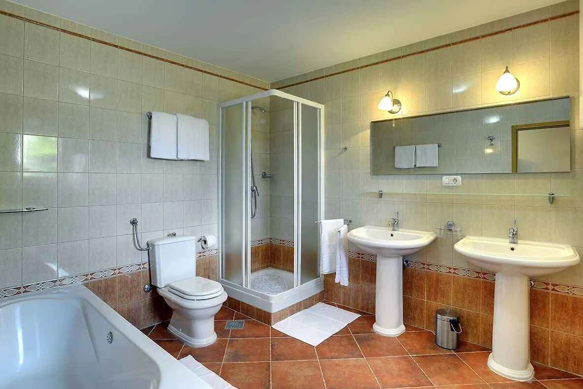 Der Eingang in Ihre Villa befindet sich im Erdgeschoss und ist ebenerdig. Wohnzimmer mit 1 Zusatzbett auf Bett (kleiner 2,00 x 0,90 m), Sitzecke, TV, Kamin, Essecke (6 Plätze) und Zugang zum Balkon Zugang zur Terrasse (20 qm, überdacht, Gartenmöbel, Sonnenschirm). Schlafzimmer mit 2 Zusatzbetten auf Bett (kleiner 2,00 x 0,90 m). 2 Schlafzimmer jeweils mit 1 Doppelbett, TV und Zugang zum Balkon. Schlafzimmer mit 1 Doppelbett, TV und Zugang zum Balkon (Gartenmöbel). 4 Schlafzimmer jeweils mit 1 Doppelbett und TV. Kochecke mit Elektroherd (Cerankochfeld, 4 Platten), Backofen, Dunstabzugshaube, Kühlschrank (Eisfach), Mikrowelle und Kaffeemaschine. Kochecke im Wohnzimmer mit Essecke, (4 Flammen), Elektroherd (Cerankochfeld, 4 Platten), Backofen, Dunstabzugshaube, Geschirrspüler, Kühlschrank, Mikrowelle, Kaffeemaschine, Toaster und elektrischem Wasserkocher. 3 Bäder jeweils mit Dusche, 1 Waschbecken und WC. Bad mit Badewanne, Dusche, 1 Waschbecken und WC. Separates WC mit 1 Waschbecken und WC.