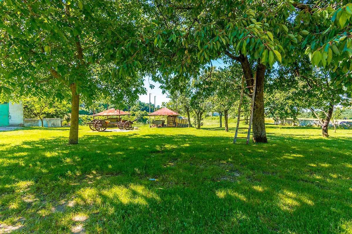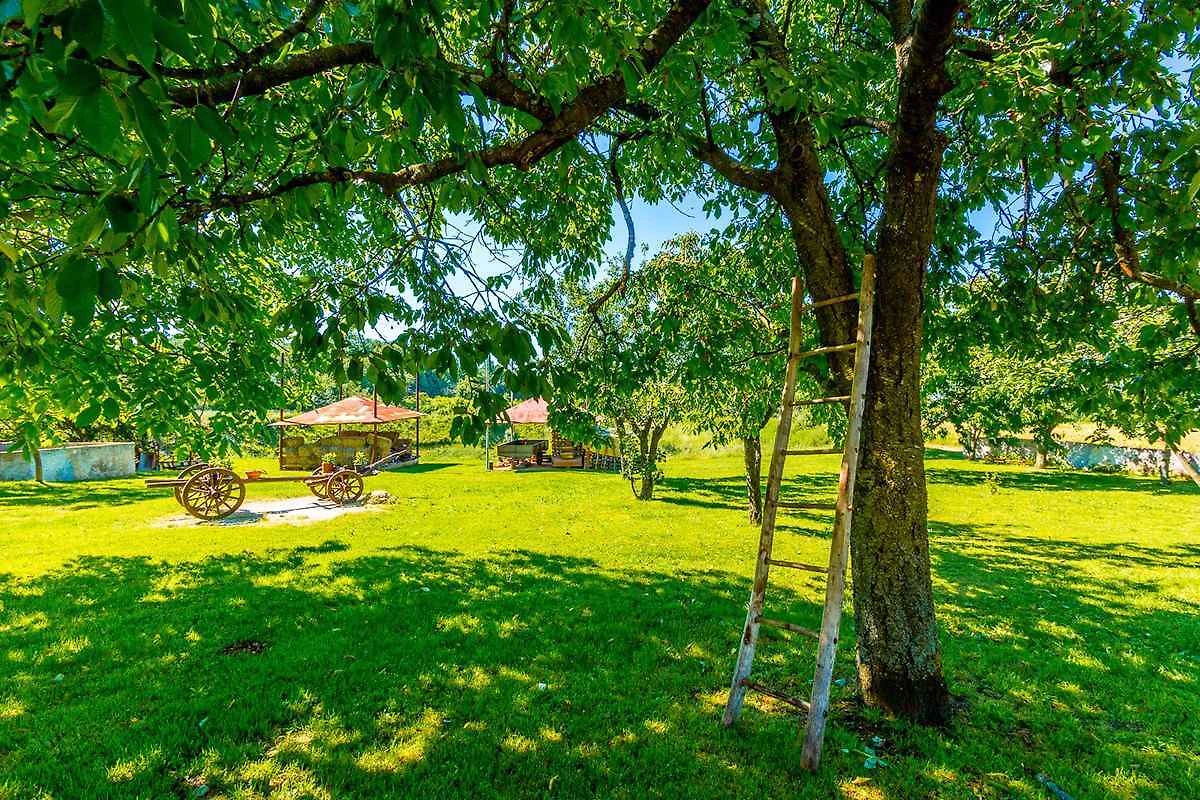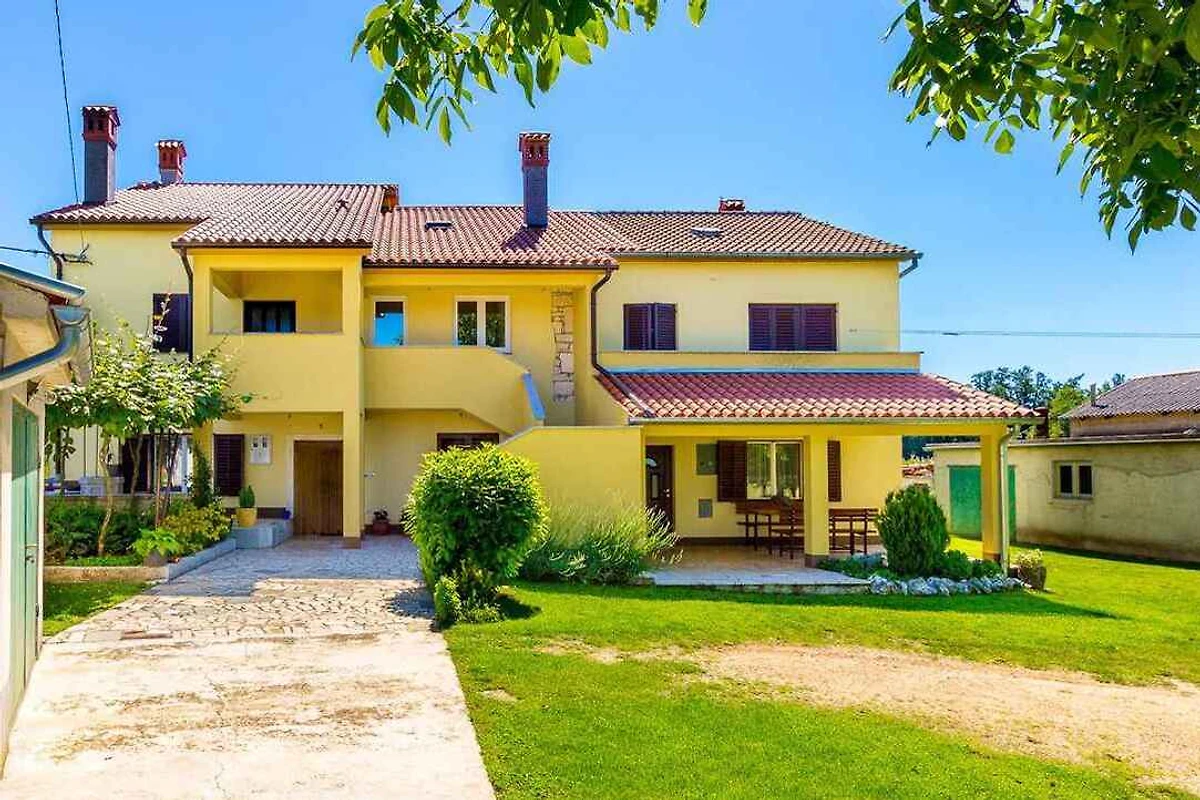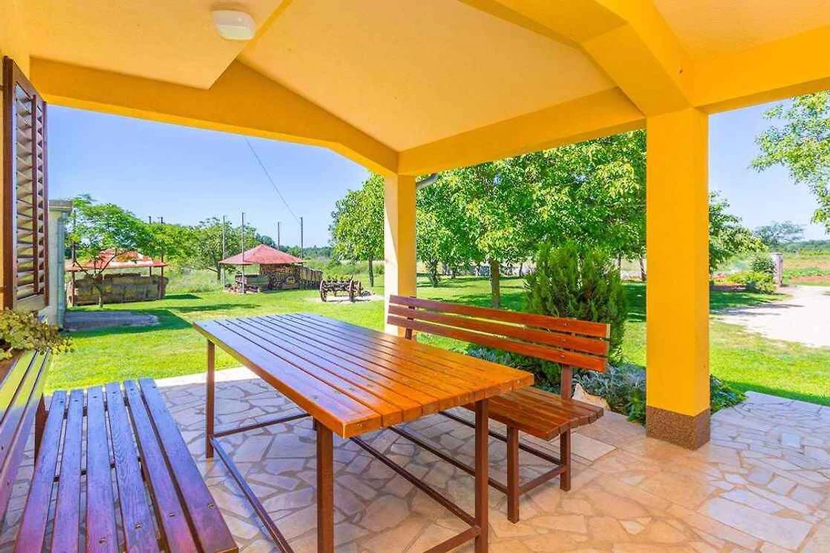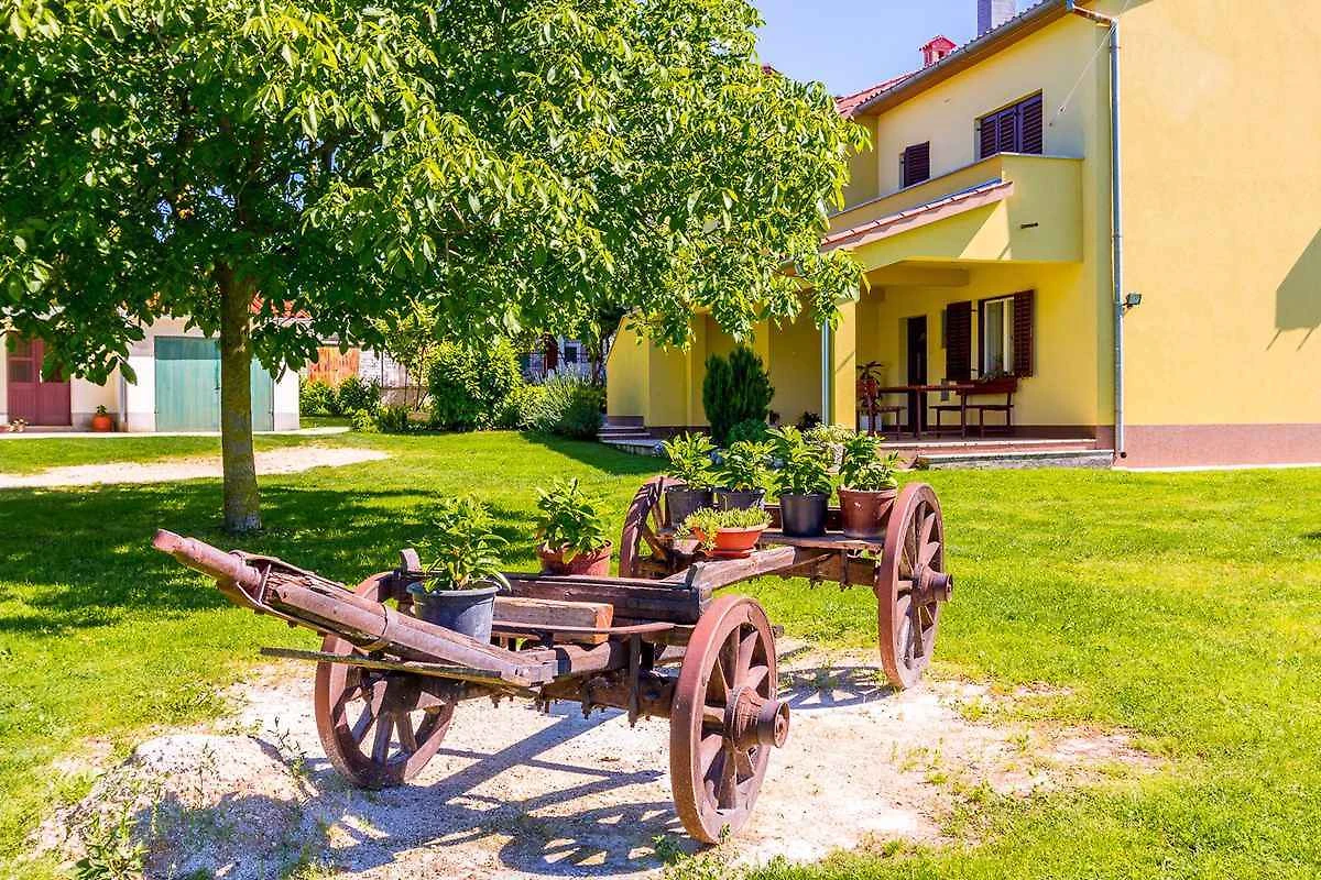Barban, Ortsteil Grandići. Das Ferienhaus befindet sich auf einem geschlossenen Gartengrundstück. Der Vermieter wohnt ständig im Haus, nutzt jedoch einen separaten Eingang. Doppelhaus. gemeinsamer Garten. Auf fünftausend Quadratmetern erstreckt sich dieses wunderschöne gelbe Ferienhaus in Grandići, in der Umgebung von Barban, das mit einem ländlichen Charme anzieht, wie von aussen so auch von innen. Umgeben von einem einladenden grünen Rasen auf dem stolz ein betagter Kastanien- und Kirschbaum stehen, mit einem alten Zug, dekoriert mit duftenden Töpfen im Hintergrund, ist dieses Ferienhaus perfekt für Familien mit Kindern. Kürzlich renoviert ist das Ferienhaus den modernen Lebensbedingungen angepasst worden und bietet eine gemütliche Privatunterkunft in Istrien für sieben Personen. Die Zufahrt erfolgt über eine Nebenstrasse (asphaltiert). Parkplatz (für 2 Pkws) auf dem Grundstück.