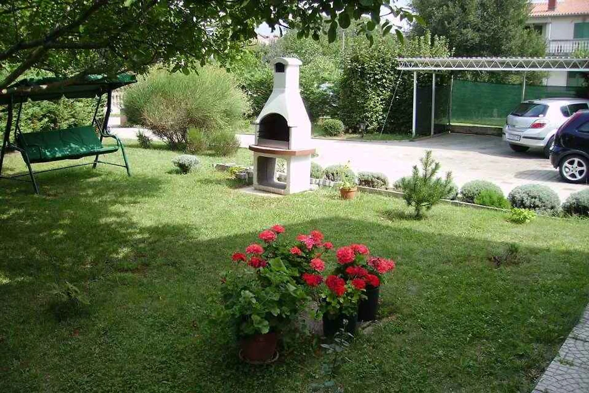 Labin. Die Ferienwohnung befindet sich auf einem 1800 qm grossen, offenen Gartengrundstück mit Wiese, Blumen, Sträuchern und Bäumen. Der Vermieter wohnt ständig im Haus, nutzt jedoch einen separaten Eingang. Die Zufahrt erfolgt über eine Nebenstrasse (asphaltiert). Parkplatz (für 4 Pkws) auf dem Grundstück.