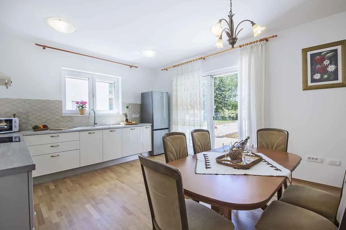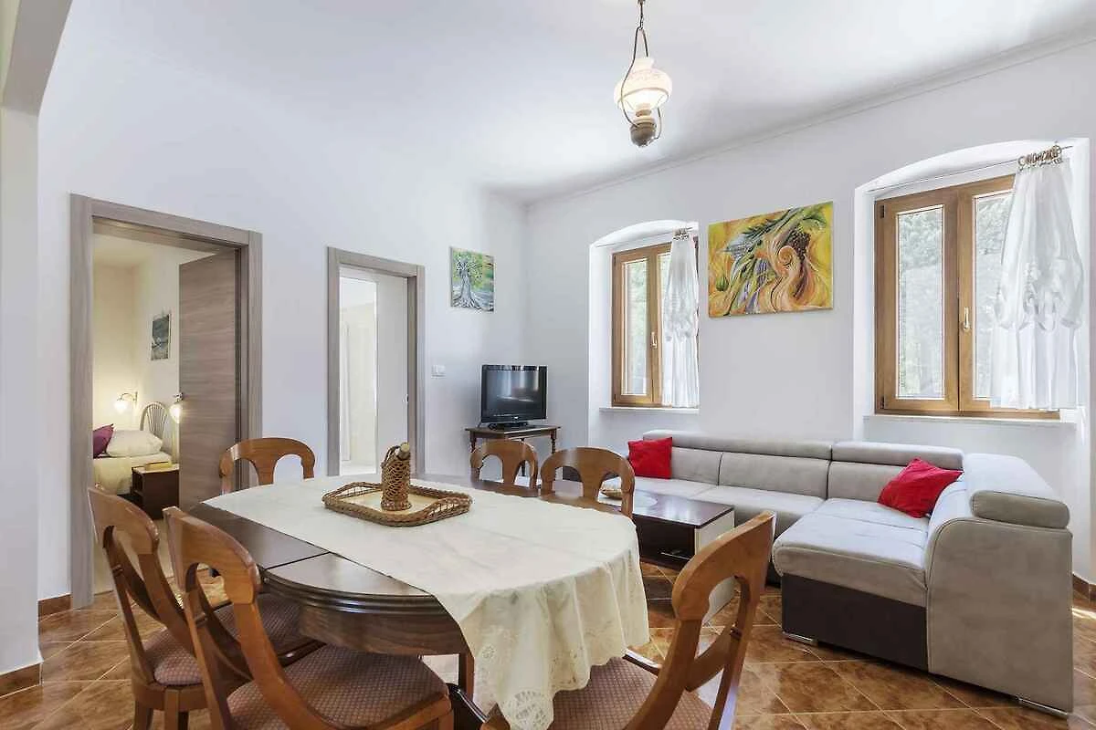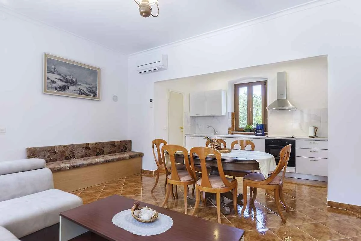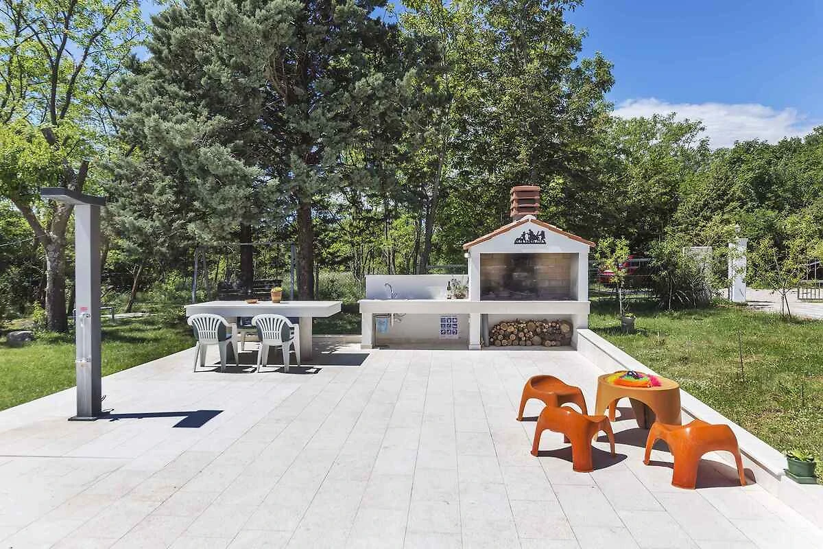 Labin. Die Villa befindet sich auf einem 4500 qm grossen, geschlossenen Gartengrundstück mit Wiese, Blumen, Sträuchern und Bäumen, von einem Zaun und einer Hecke begrenzt. Der Vermieter wohnt nicht im Haus oder auf dem Grundstück. Haus mit 2 separaten Wohnungen. In einer grünen Oase 700 m vom Stadtzentrum entfernt. Partys und Jugendgruppen sind nicht erlaubt. Die Zufahrt erfolgt über eine Nebenstrasse (Geröll oder Schotter, Länge 20 m). Parkplatz (für 4 Pkws) auf dem Grundstück und der Strasse vor dem Haus.