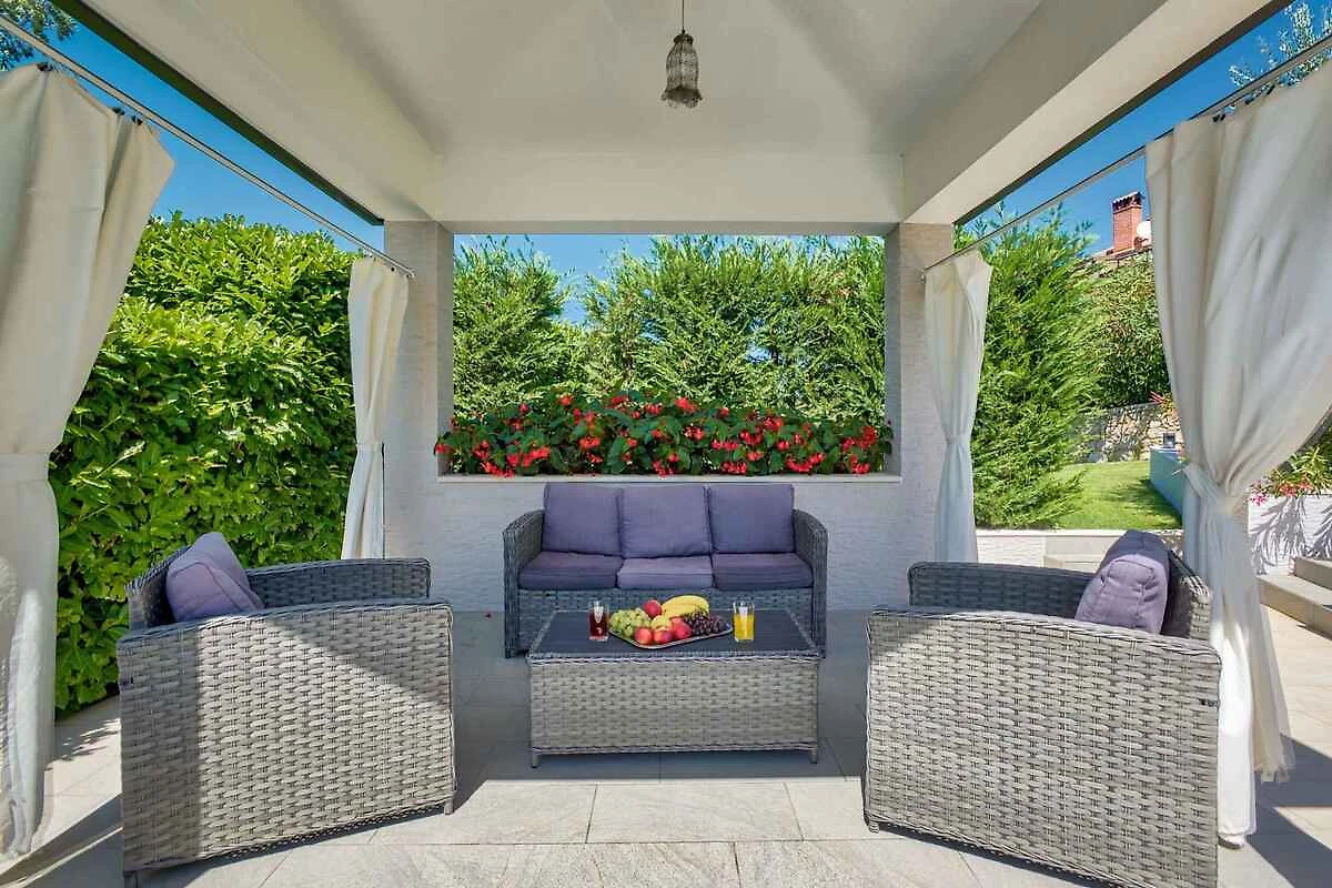 Labin, Ortsteil Ripenda kras. Das Ferienhaus befindet sich auf einem 1700 qm grossen, geschlossenen Gartengrundstück mit Wiese, Blumen, Sträuchern und Bäumen. Der Vermieter wohnt nicht im Haus oder auf dem Grundstück. Die Zufahrt erfolgt über eine Nebenstrasse (asphaltiert). Parkplatz auf der Strasse vor dem Haus. Privatparkplatz für 3 Fahrzeuge.