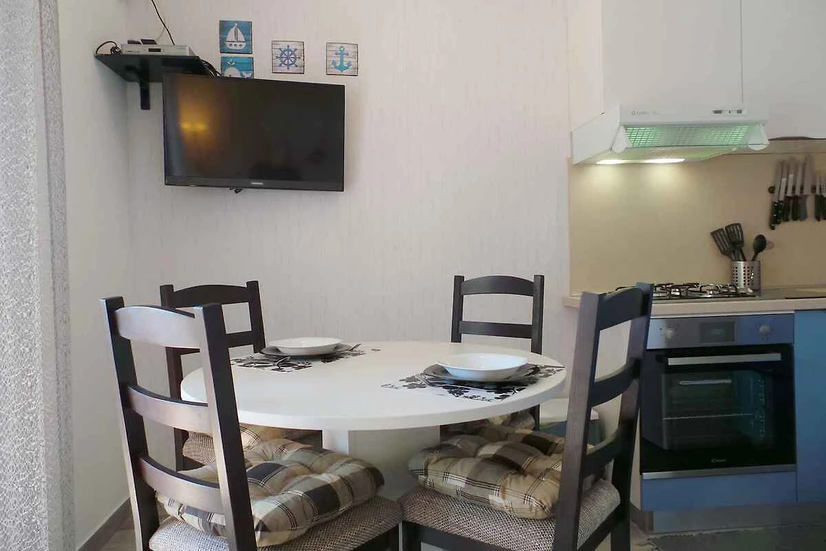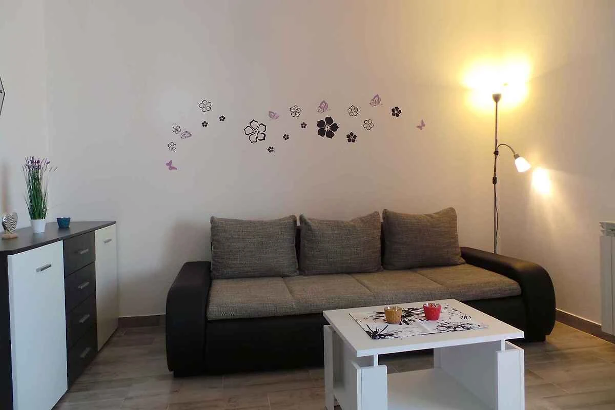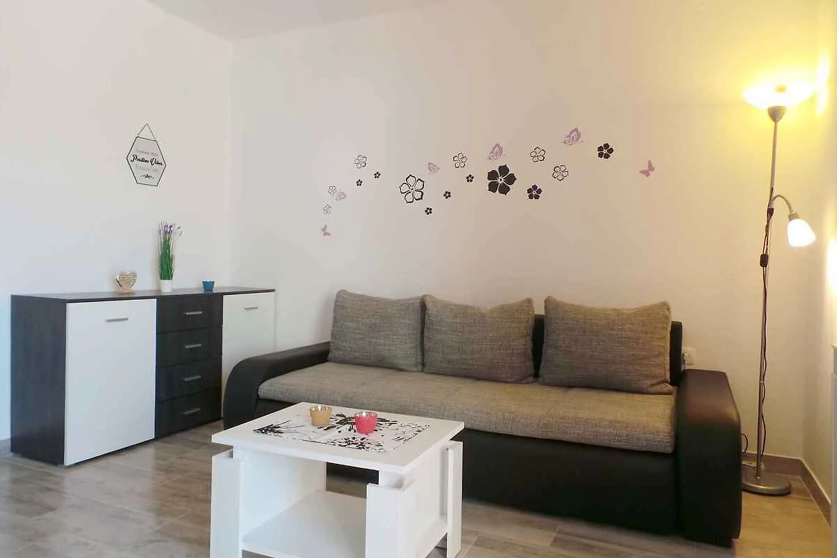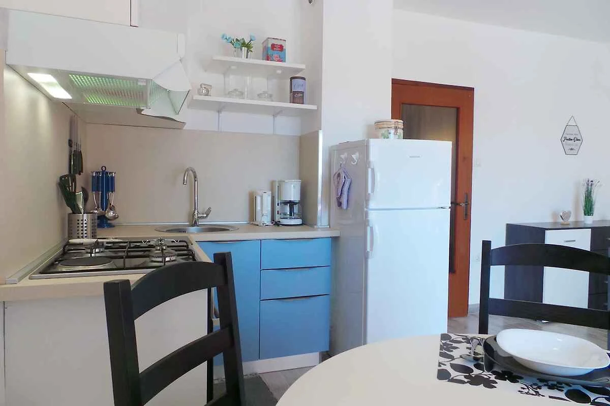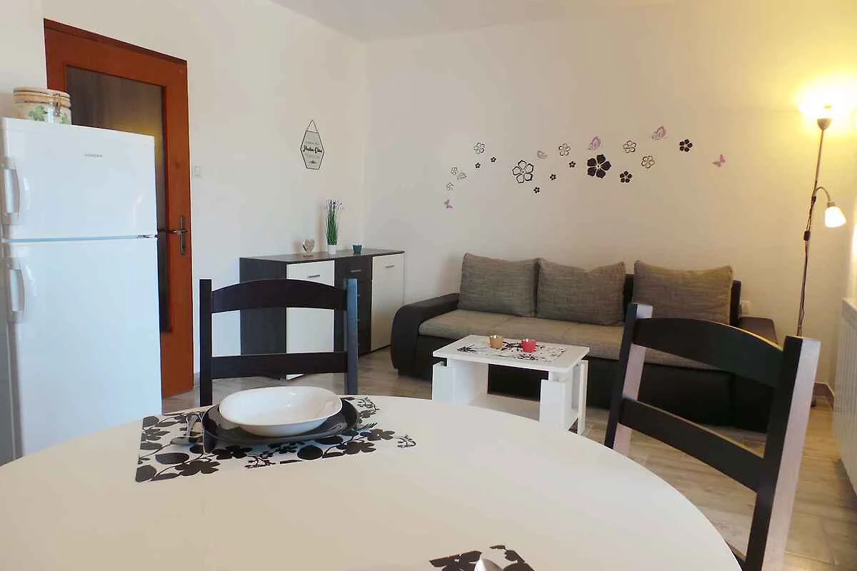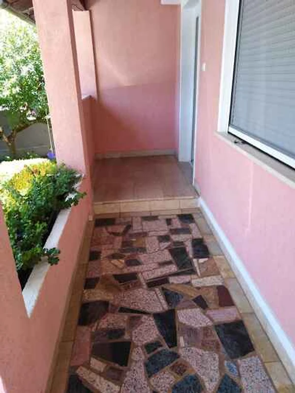 Medulin, Ortsteil Biškupije. Die Ferienwohnung befindet sich auf einem 550 qm grossen, geschlossenen Gartengrundstück mit Blumen, Sträuchern und Bäumen. Der Vermieter wohnt ständig im Haus, nutzt jedoch einen separaten Eingang. Engleski i Njemački. Die Zufahrt erfolgt über eine Nebenstrasse (asphaltiert). Parkplatz (für 2 Pkws) auf dem Grundstück.