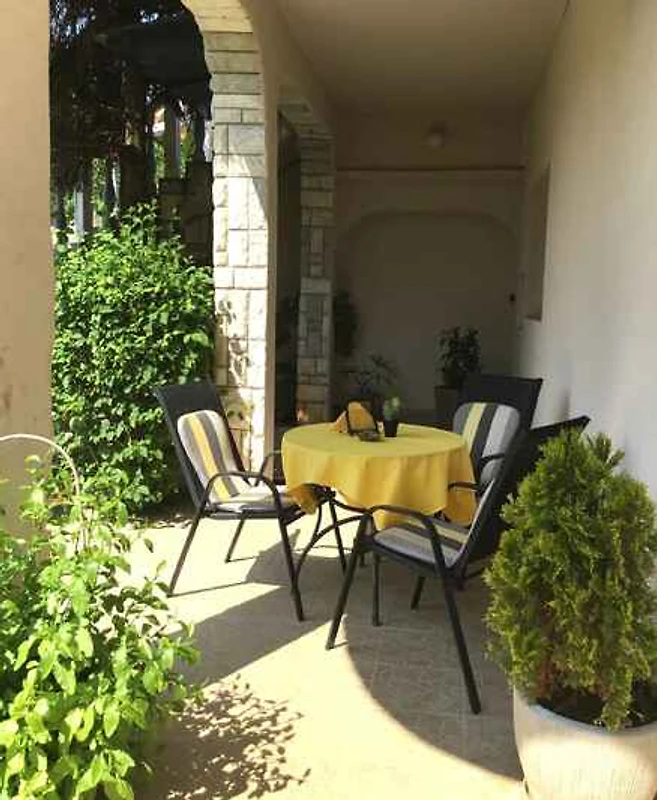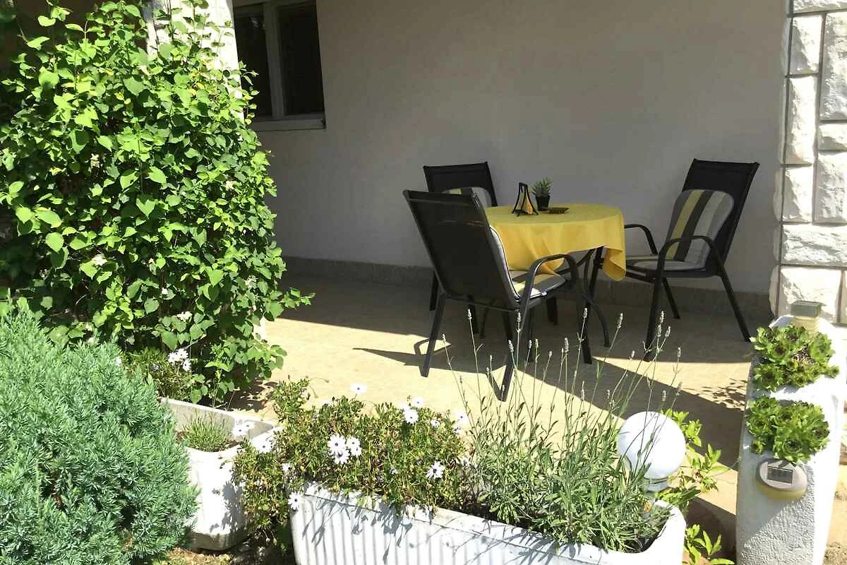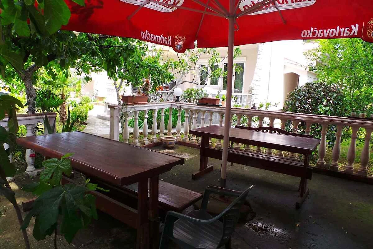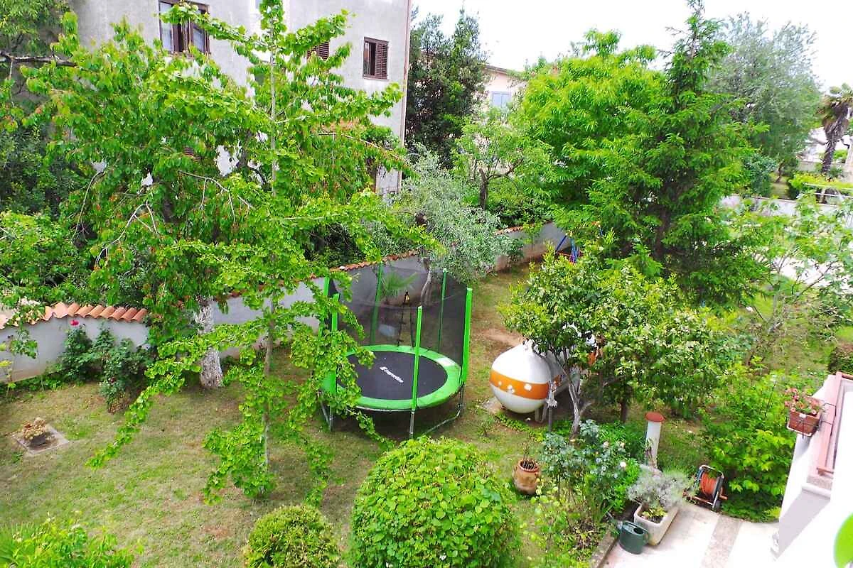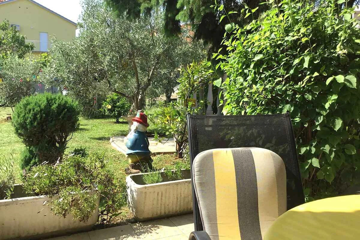 Medulin. Die Ferienwohnung befindet sich auf einem 2000 qm grossen, geschlossenen Gartengrundstück mit Blumen, Sträuchern und Bäumen. Der Vermieter wohnt ständig im Haus, nutzt jedoch einen separaten Eingang. Die Zufahrt erfolgt über eine Nebenstrasse (Geröll oder Schotter). Parkplatz (für 8 Pkws) auf dem Grundstück.