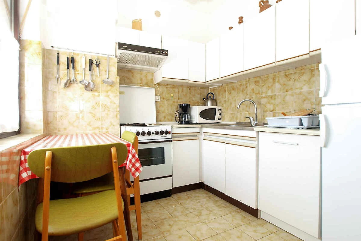 . Wohnzimmer mit 1 Zusatzbett auf Schlafgelegenheit, TV und Klimaanlage. 2 Schlafzimmer jeweils mit 1 Doppelbett. Schlafzimmer mit 1 Doppelbett und 1 Einzelbett. Küche mit Gasherd, Backofen, Kühlschrank (Eisfach), Mikrowelle und Kaffeemaschine. Bad mit Badewanne, Waschmaschine, 1 Waschbecken, WC und Föhn.