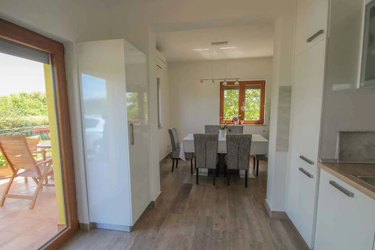 Einkauf 1000 m, Restaurant 800 m, Ortszentrum 6 km. Arzt in Karigador 2,5 km. Bahnhof in Koper 45 km. Apotheke in Novigrad 6 km. Flughafen in Pula 75 km. Im Sommer: Adria 800 m in Dajla (Strand 800 m in Dajla mit Wiese, Kies, Steinen, Felsen und Badeplateaus). Golf in Crveni vrh 25 km. Tennis, Wassersportmöglichkeiten jeweils 2,5 km in Karigador.