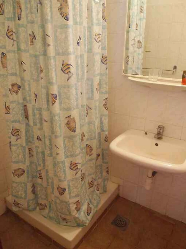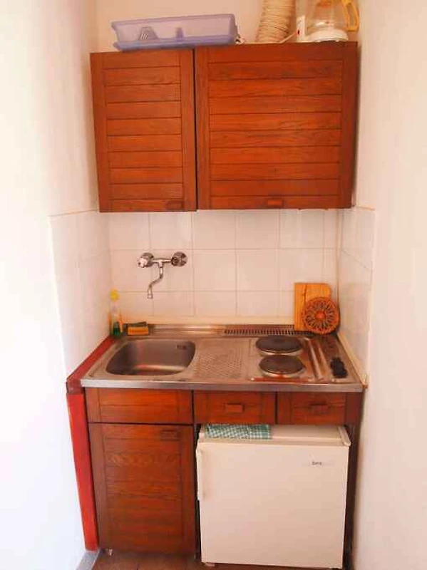 Der Eingang in Ihr Studio befindet sich im Erdgeschoss, ist ebenerdig und führt direkt in das Wohn/Schlafzimmer. Wohn/Schlafzimmer mit 1 Doppelbett, TV, Essecke (2 Plätze) und Zugang zur Terrasse (10 qm, Gartenmöbel, 1 Tisch, 2 Stühle). Kochnische im Wohn/Schlafzimmer mit Elektroherd (2 Platten), Kühlschrank (Eisfach) und Kaffeemaschine. Bad mit Dusche, 1 Waschbecken und WC.