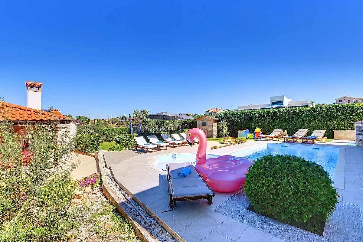 Kanfanar. Die Villa befindet sich auf einem 1500 qm grossen, geschlossenen Gartengrundstück mit Wiese, Blumen, Sträuchern und Bäumen, von einem Zaun und einer Hecke begrenzt. Der Vermieter wohnt nicht im Haus oder auf dem Grundstück. Im märchenhaften Binnenland Istriens gelegen bietet die Villa in Kanfanar eine perfekt ausgestattete Privatunterkunft für sechs Personen. Diese Villa in Kanfanar befindet sich in der Nähe touristischer Perlen an der Küste wie Rovinj, aber auch sehr nah an uralten Städten im Binnenland wie Dvigrad. Die Zufahrt erfolgt über eine Nebenstrasse (asphaltiert). Parkplatz (für 3 Pkws) auf dem Grundstück.