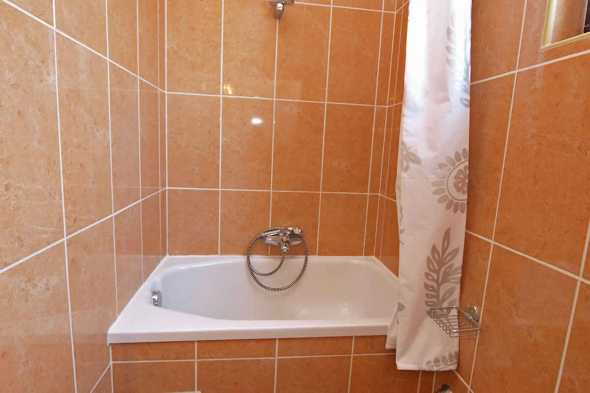 . Wohnzimmer mit 1 Zusatzbett auf Schlafgelegenheit und TV. Schlafzimmer mit 2 Einzelbetten. Schlafzimmer mit 1 Doppelbett. Küche mit Gasherd, Backofen, Kühlschrank (Eisfach), Kaffeemaschine und elektrischem Wasserkocher. Bad. Separates WC mit Badewanne, Waschmaschine, 1 Waschbecken und WC.