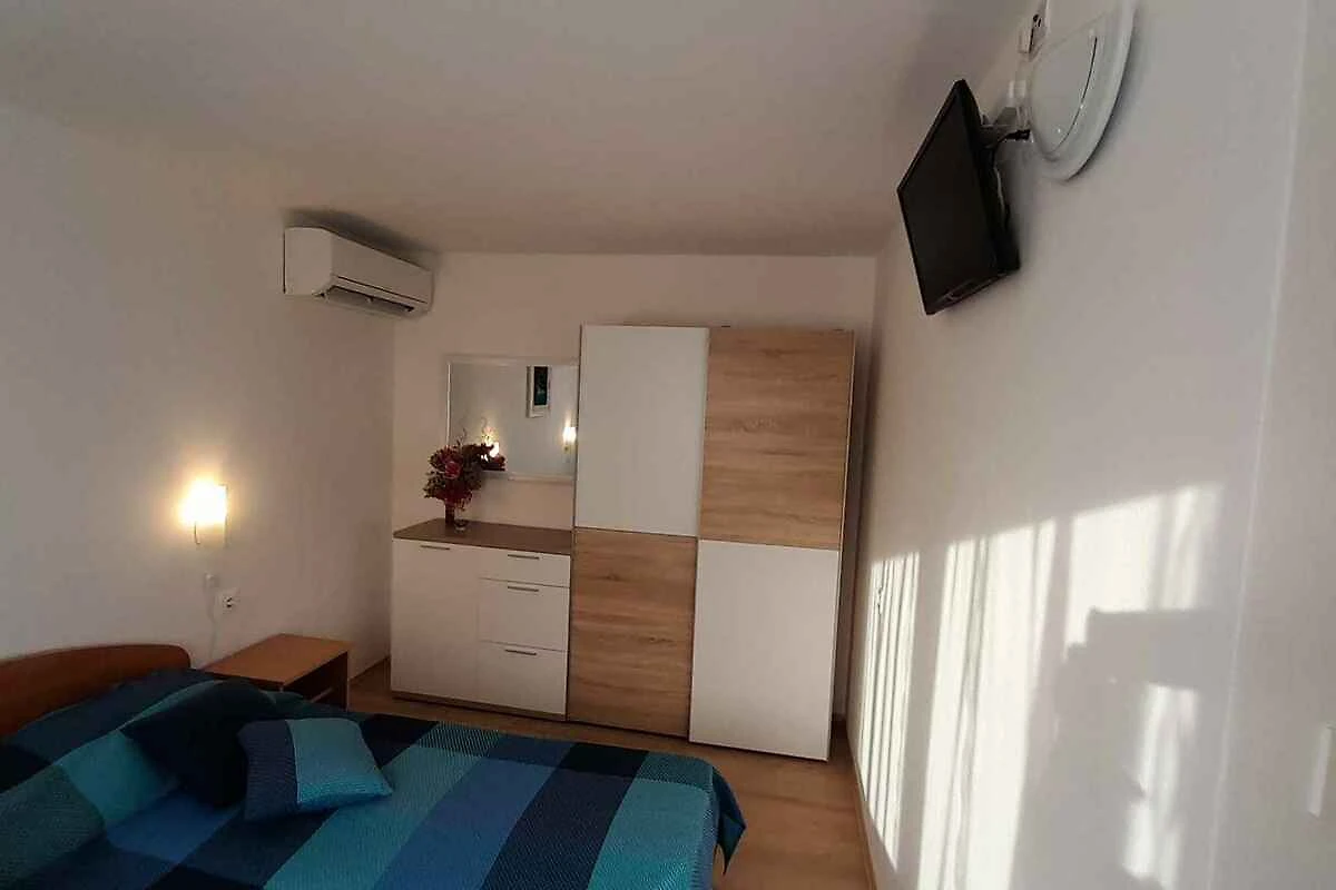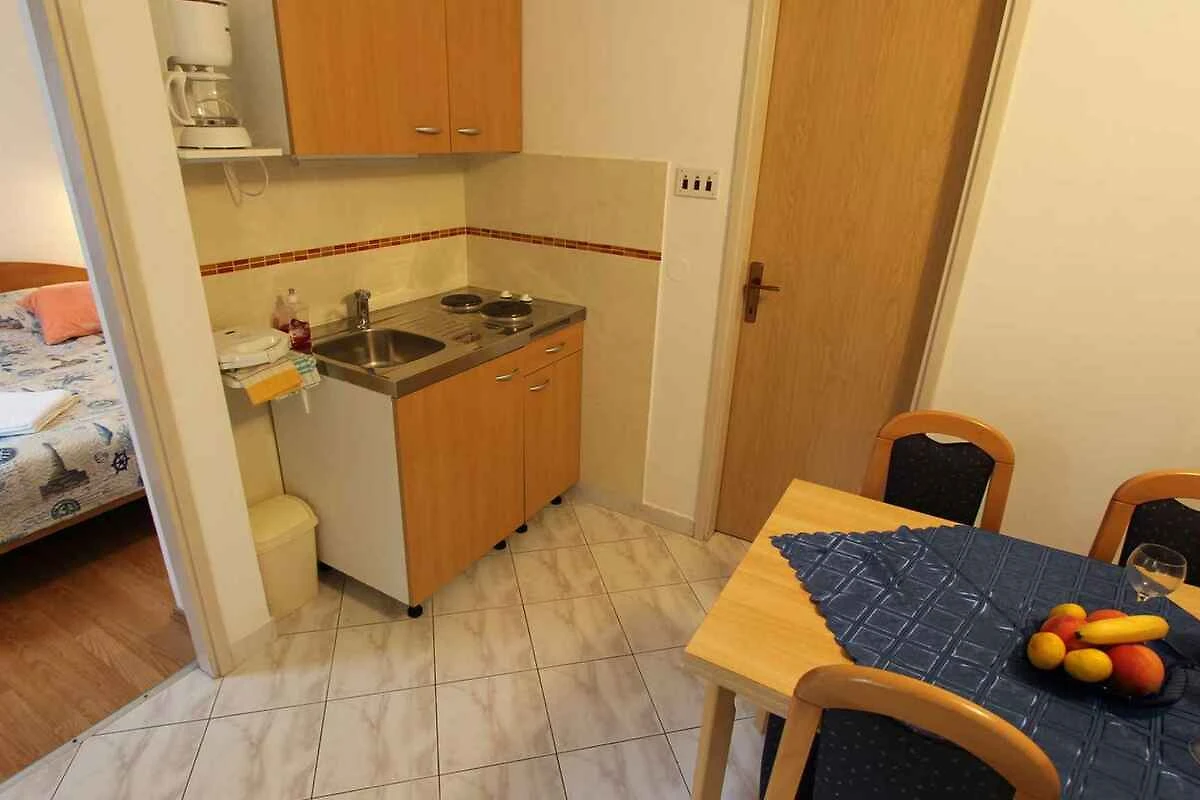 Porat. Das Studio befindet sich auf einem Gartengrundstück. Der Vermieter wohnt ständig im Haus, nutzt jedoch einen separaten Eingang. Zelt KRK MAL 004 (2 Personen) befindet sich neben demselben Gebäude. Die Zufahrt erfolgt über eine Nebenstrasse. Parkplatz (für 1 Pkw) auf dem Grundstück.