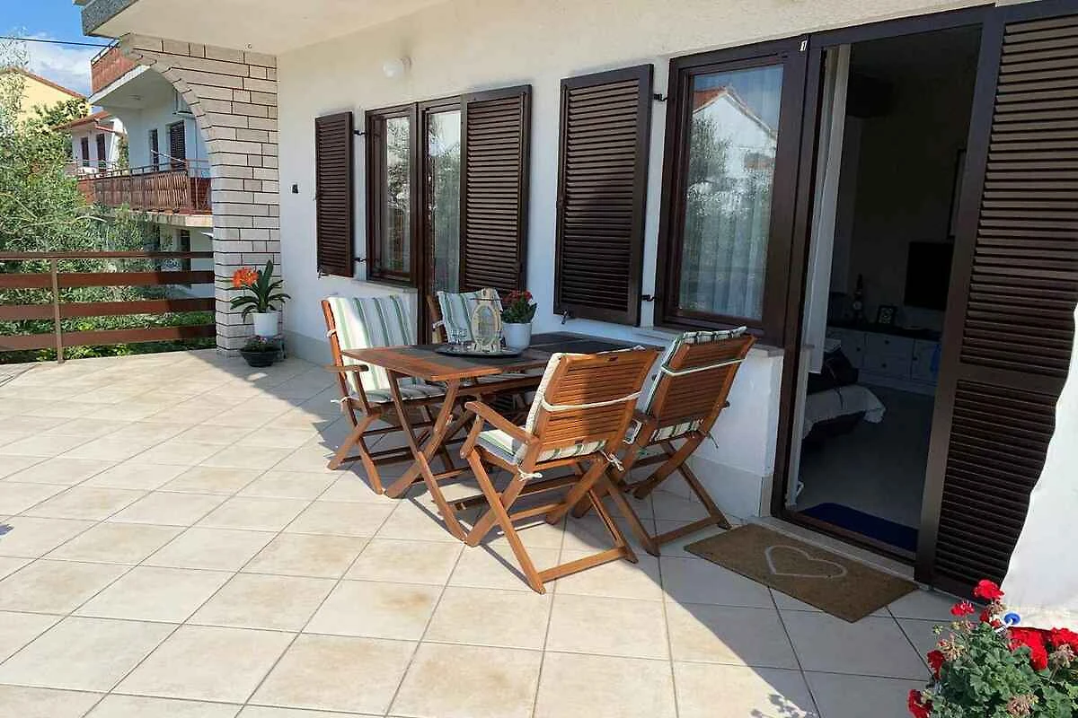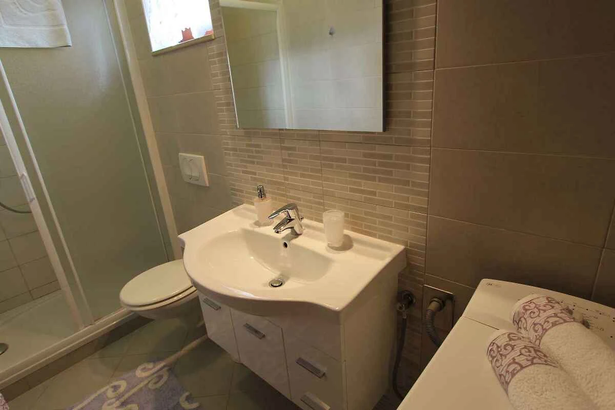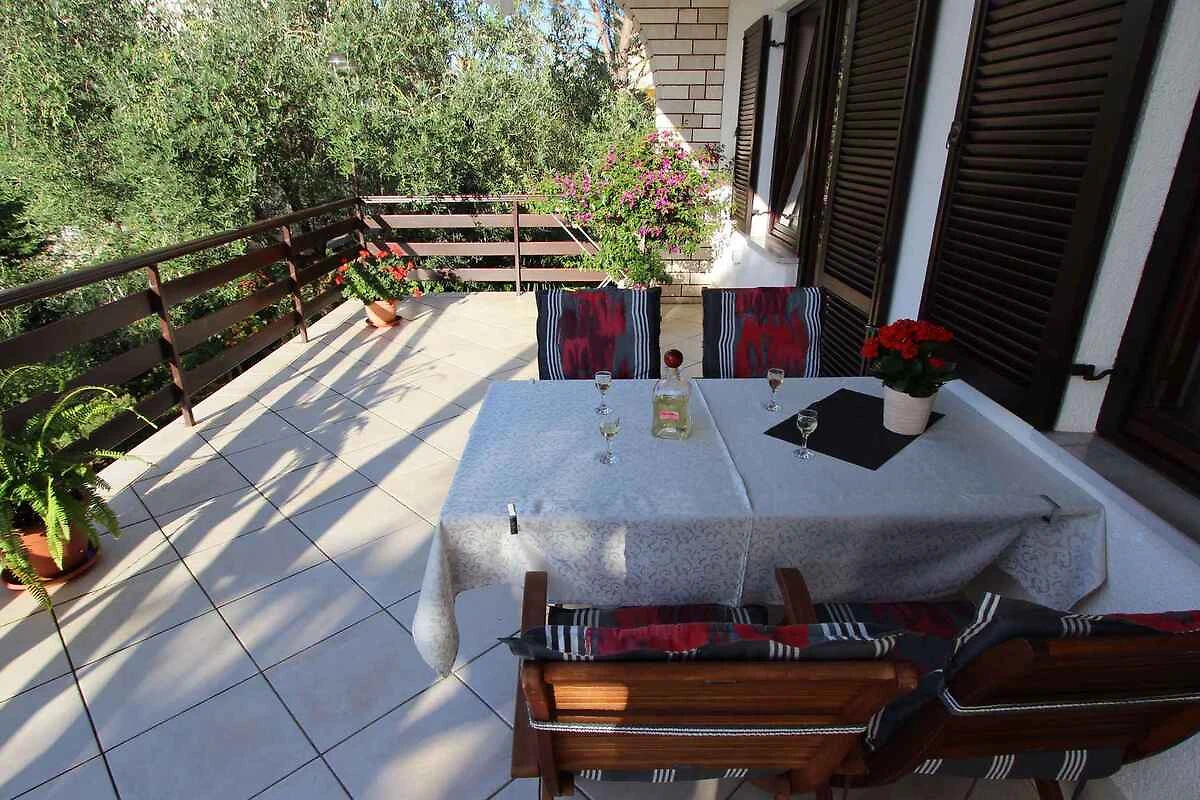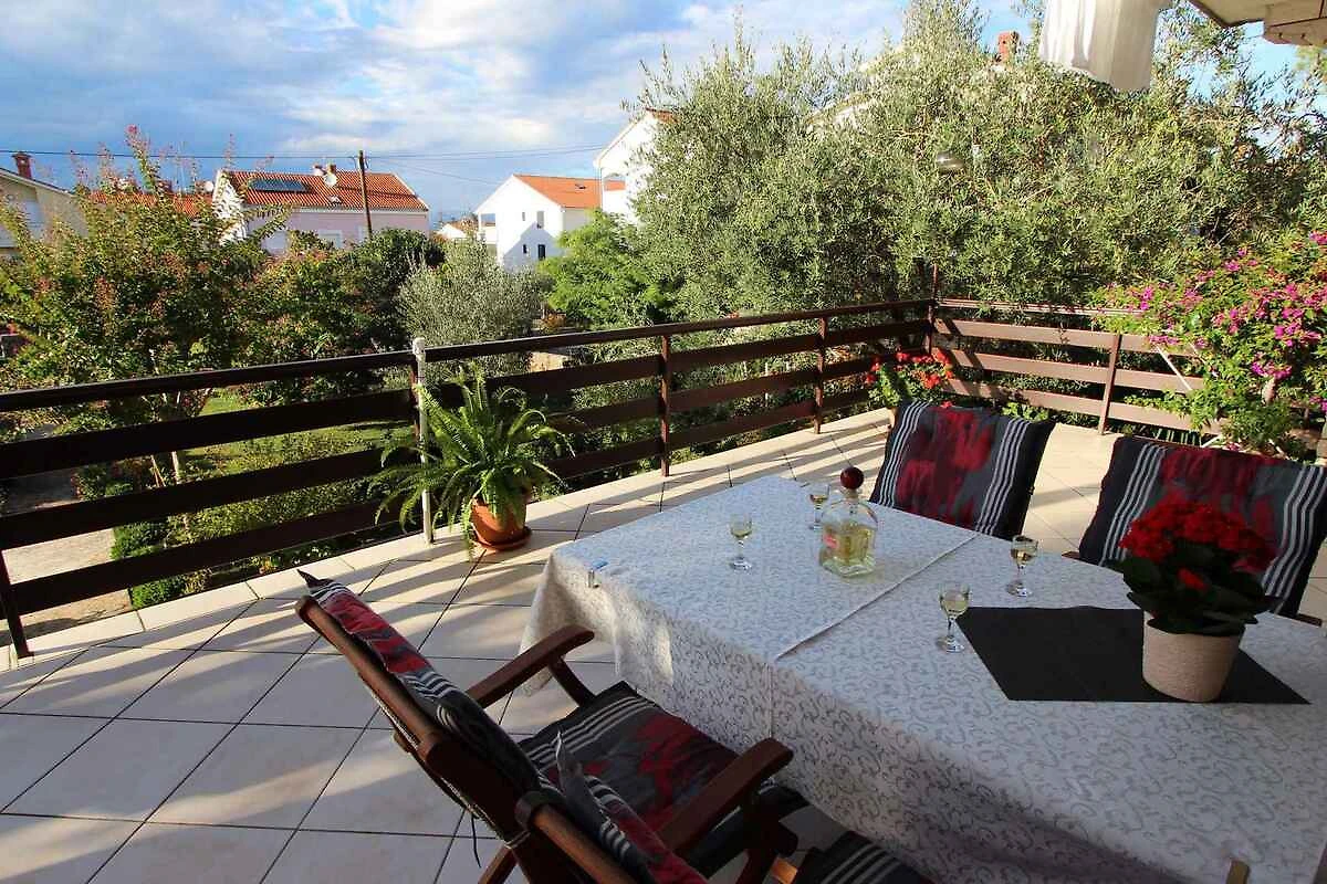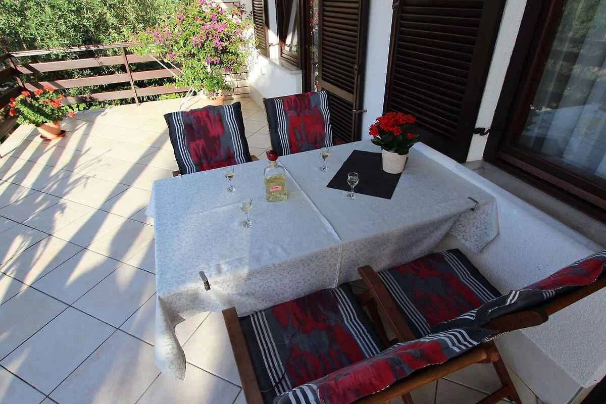 Malinska. Die Ferienwohnung befindet sich auf einem 200 qm grossen, geschlossenen Gartengrundstück, von einem Zaun begrenzt. Der Vermieter wohnt ständig im Haus, nutzt jedoch einen separaten Eingang. KRKMAL190 befindet sich im selben Haus. Die Zufahrt erfolgt über eine Nebenstrasse. Parkplatz auf dem Grundstück.
