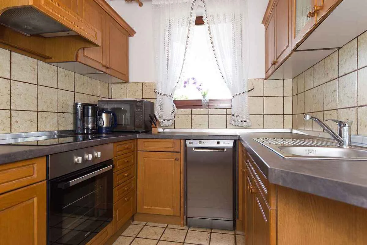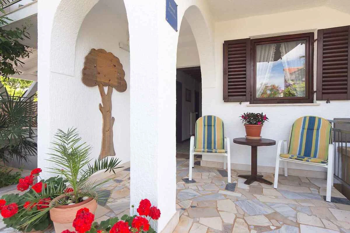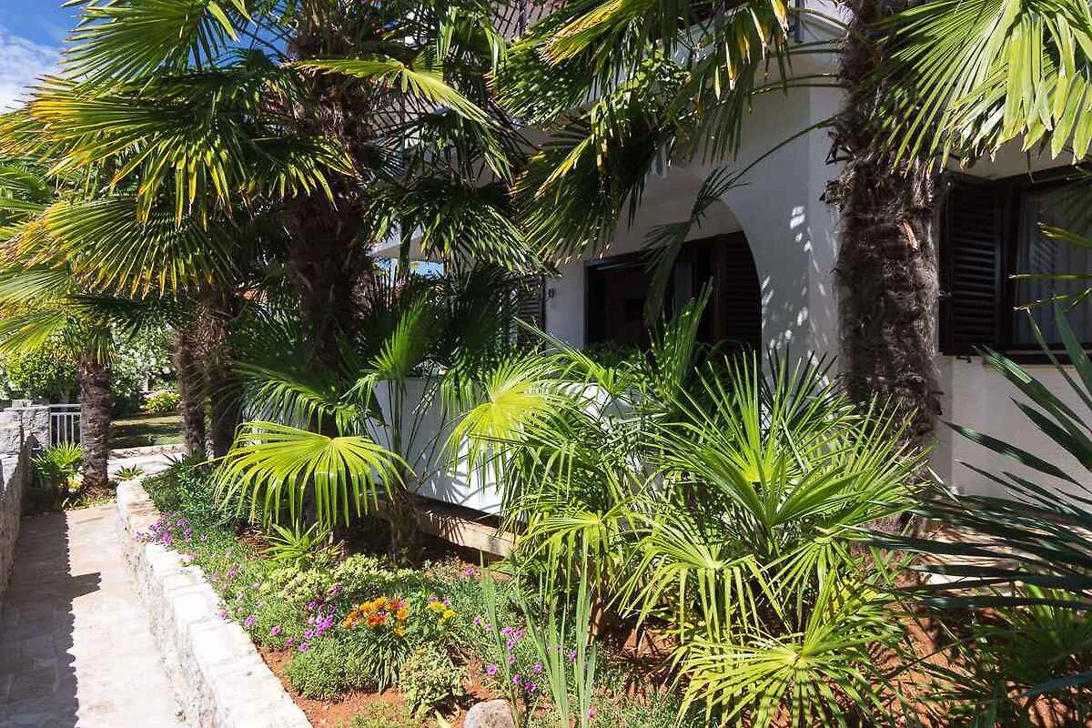 Malinska. Die Ferienwohnung befindet sich auf einem 600 qm grossen, geschlossenen Gartengrundstück mit Blumen, von einem Zaun begrenzt. Der Vermieter wohnt ständig im Haus, nutzt jedoch einen separaten Eingang. Die Zufahrt erfolgt über eine Nebenstrasse (asphaltiert, Länge 5 m). Parkplatz (für 2 Pkws) auf dem Grundstück.