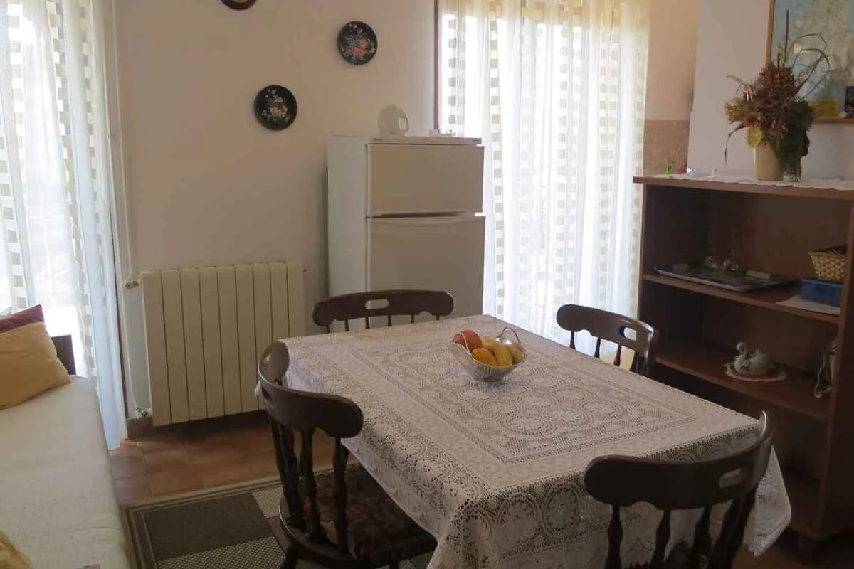 Malinska, Ortsteil Malinska. Die Ferienwohnung befindet sich auf einem Gartengrundstück. Der Vermieter wohnt ständig im Haus, nutzt jedoch einen separaten Eingang. Parkplatz (für 1 Pkw) auf dem Grundstück.
