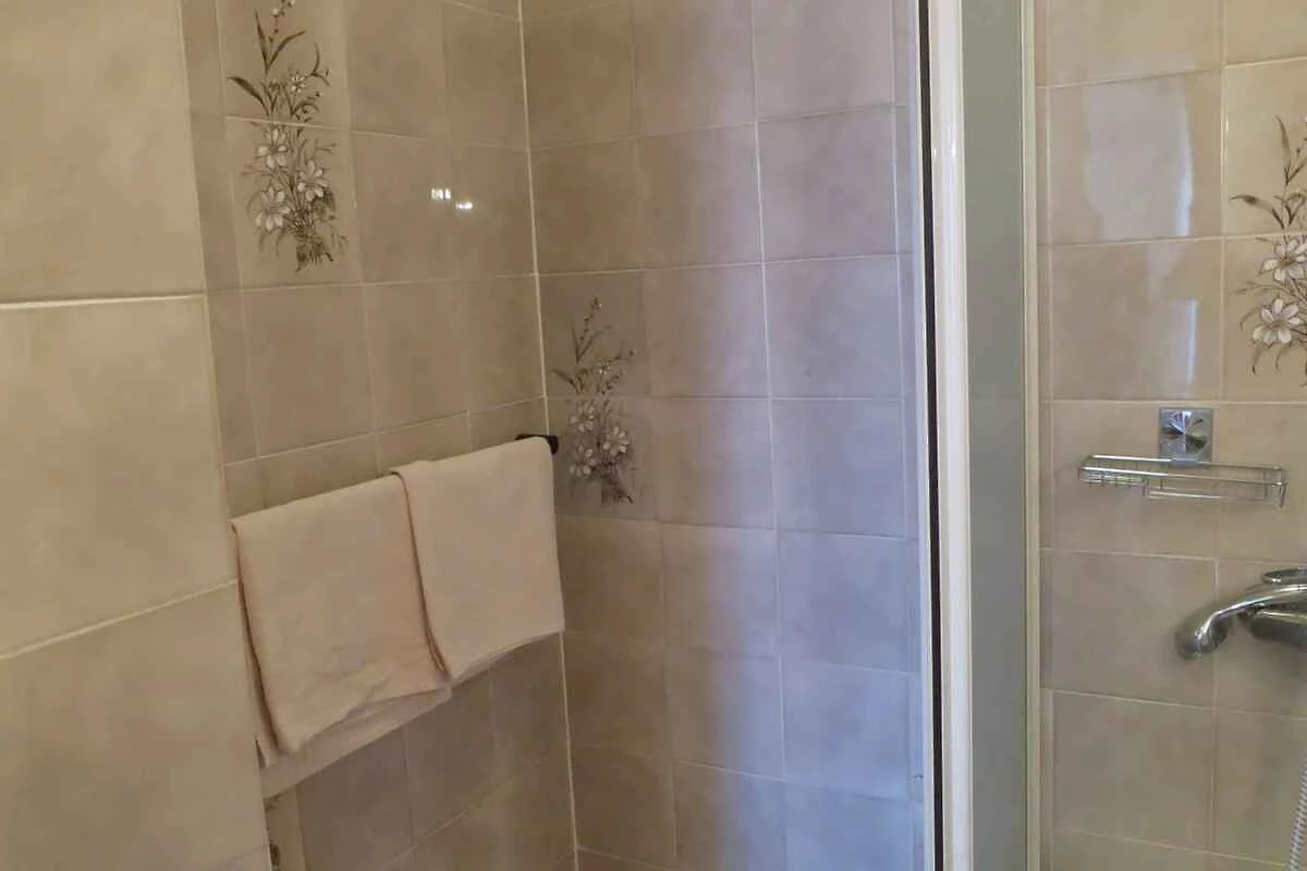 Der Eingang in Ihre Ferienwohnung befindet sich in Hochparterre und führt über eine Aussentreppe. Wohnzimmer mit Sitzecke, TV und Zugang zur Terrasse. 2 Schlafzimmer jeweils mit 1 Doppelbett. Küche in der Wohnküche mit Essecke, Gasherd, Backofen, Kühlschrank (Eisfach), Mikrowelle und Kaffeemaschine. Bad mit Dusche, 1 Waschbecken und Föhn. Separates WC mit 1 Waschbecken und WC.