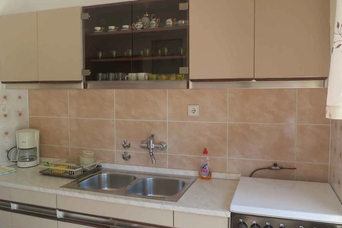 Malinska, Ortsteil Malinska. Das Studio befindet sich auf einem Gartengrundstück. Der Vermieter wohnt ständig im Haus, nutzt jedoch einen separaten Eingang. Parkplatz (für 1 Pkw) auf dem Grundstück.