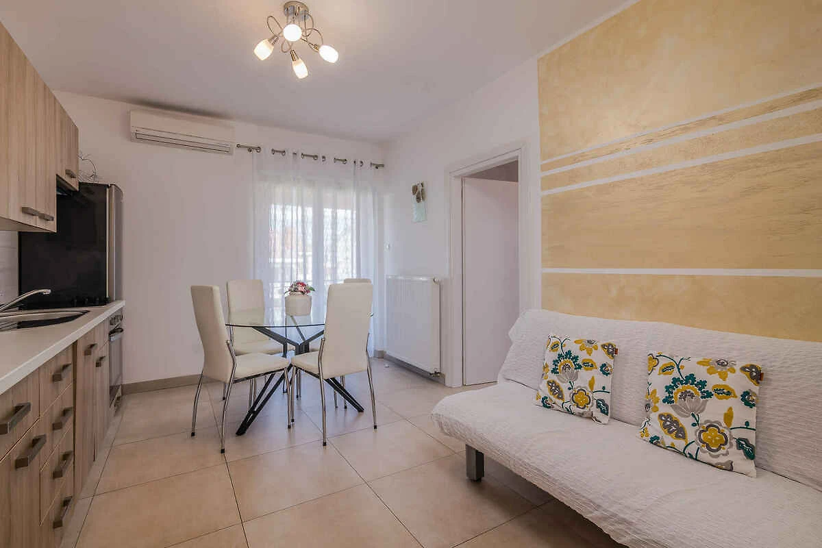 Einkauf 500 m, Restaurant 150 m, Ortszentrum 4 km. Apotheke, Bank jeweils 4 km in Malinska. Hauptstrasse 300 m. Kinderspielplatz 500 m. Im Sommer: Adria 400 m in Porat (Strand 400 m in Porat mit Steinen, Felsen und Badeplateaus). Hundestrand in Porat 600 m.
