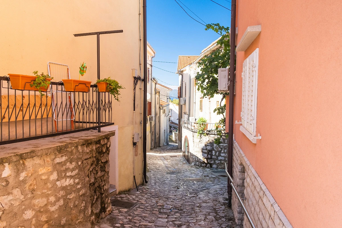 Omišalj. Die Ferienwohnung befindet sich auf einem offenen Grundstück. Der Vermieter wohnt ständig im Haus, nutzt jedoch einen separaten Eingang. FerienWohnung KRK OMI 013 (3 Personen) und KRK OMI 014 (3 Personen) befinden sich im selben Haus. Die Zufahrt erfolgt über eine Nebenstrasse (asphaltiert). Parkplatz auf der Strasse vor dem Haus.