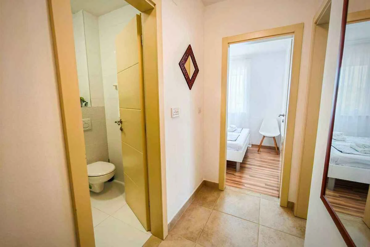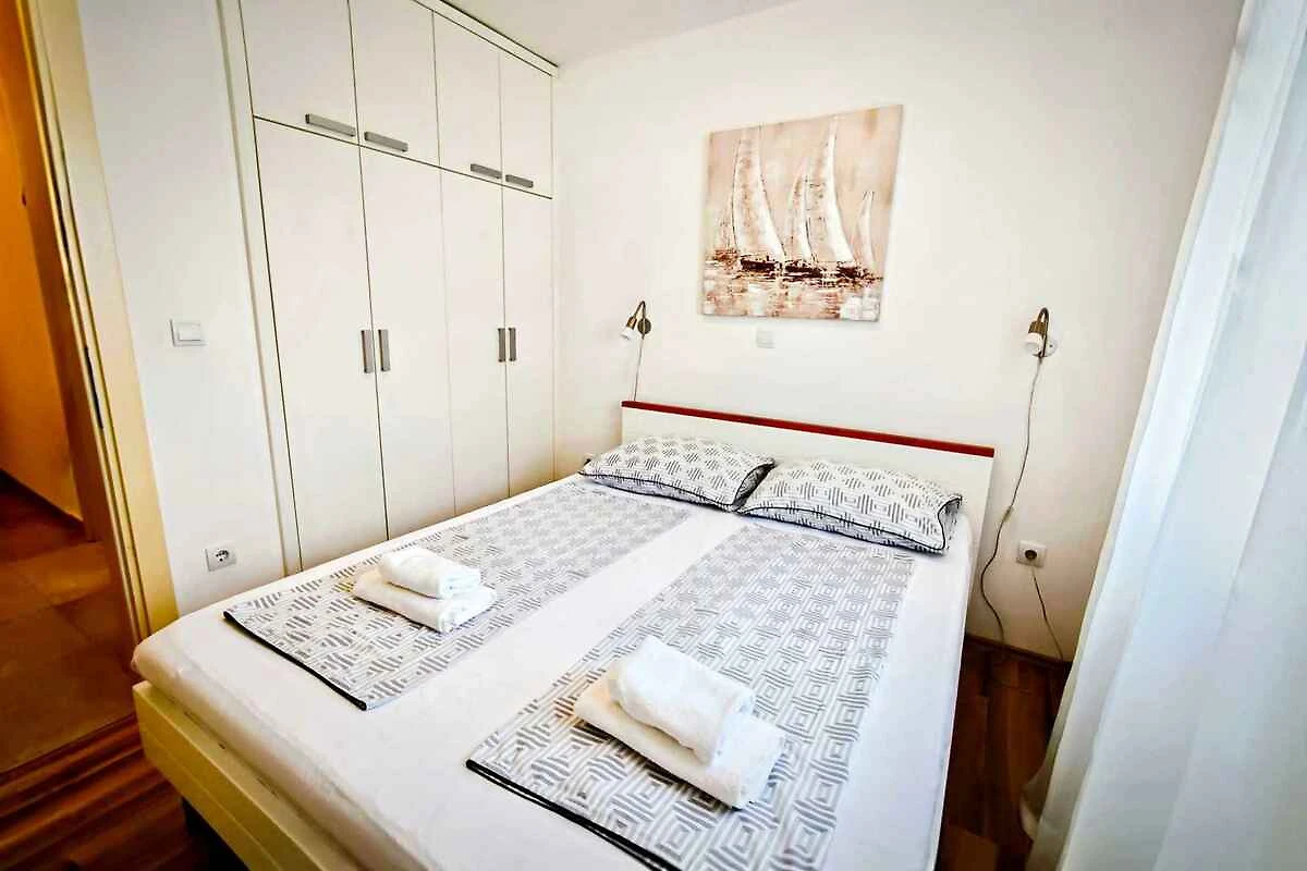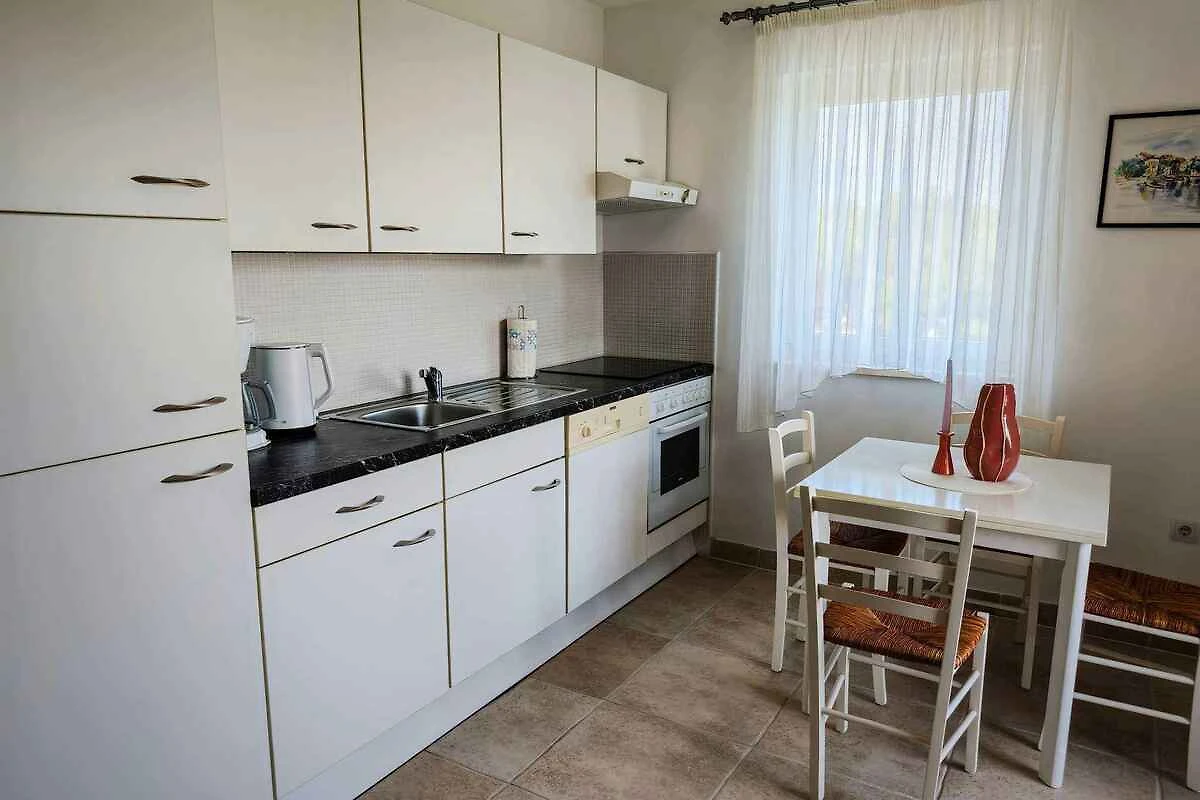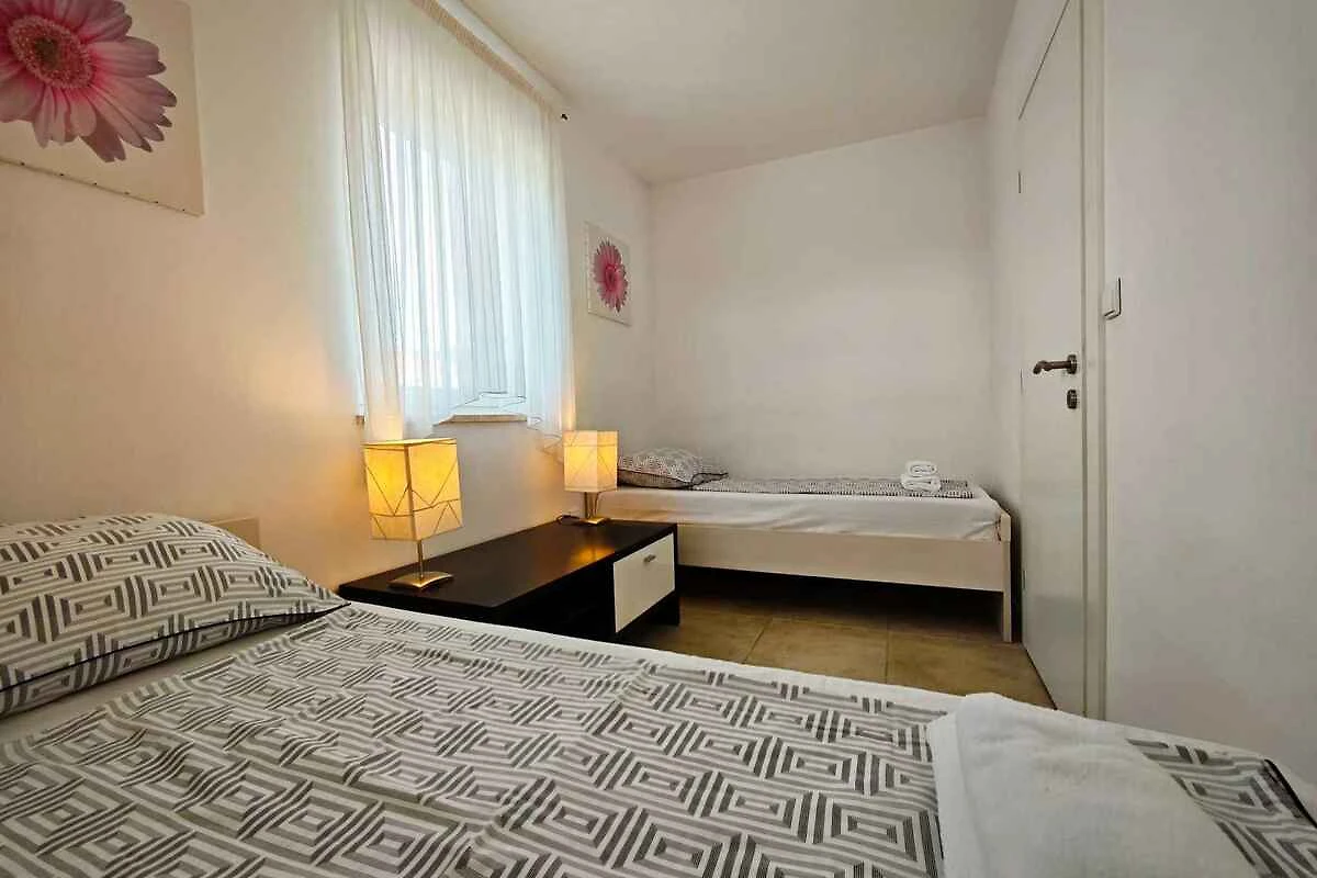 Punat. Die Ferienwohnung befindet sich auf einem 200 qm grossen, geschlossenen Gartengrundstück. Der Vermieter wohnt nicht im Haus oder auf dem Grundstück. Die Zufahrt erfolgt direkt von der Hauptstrasse (asphaltiert). Parkplatz (für 1 Pkw) auf dem Grundstück.