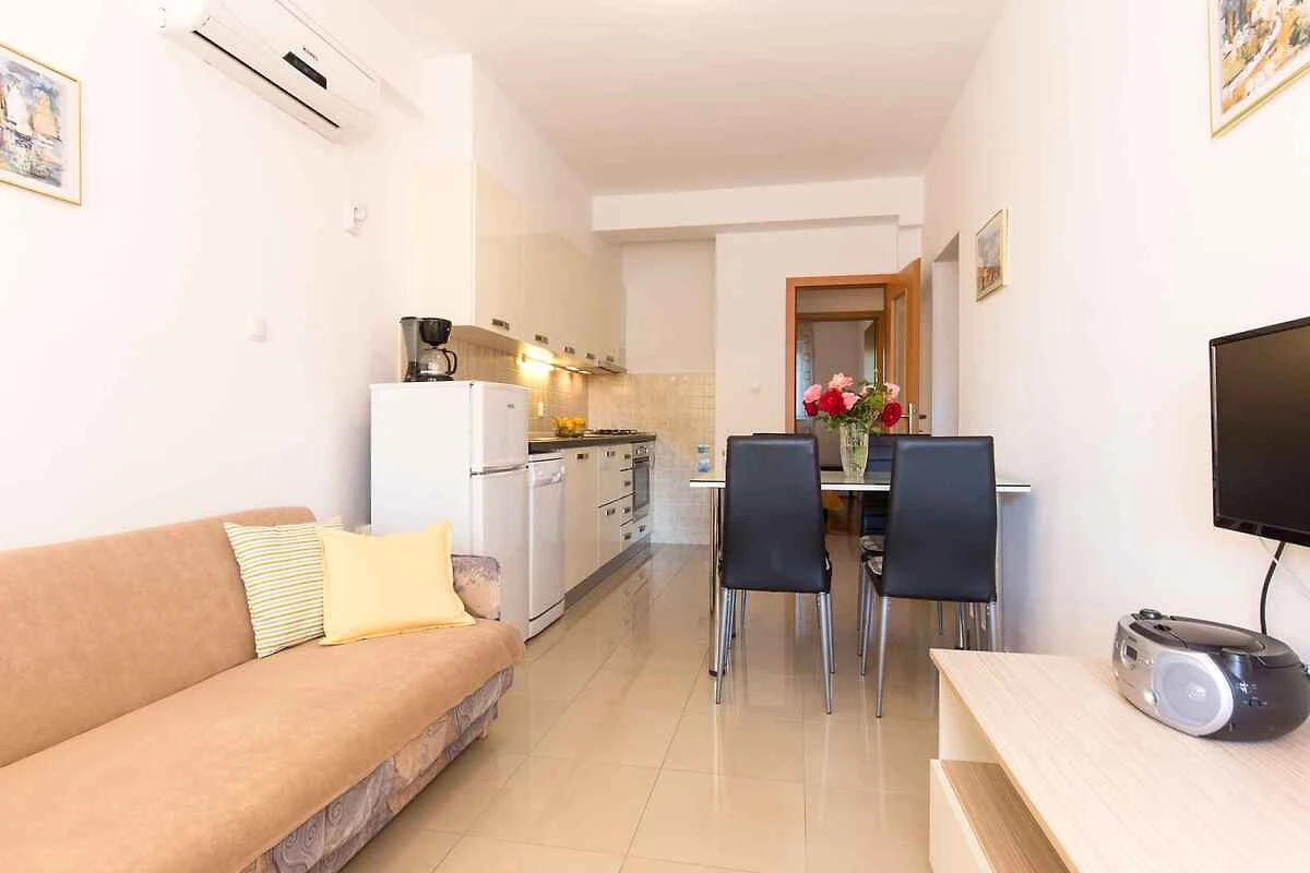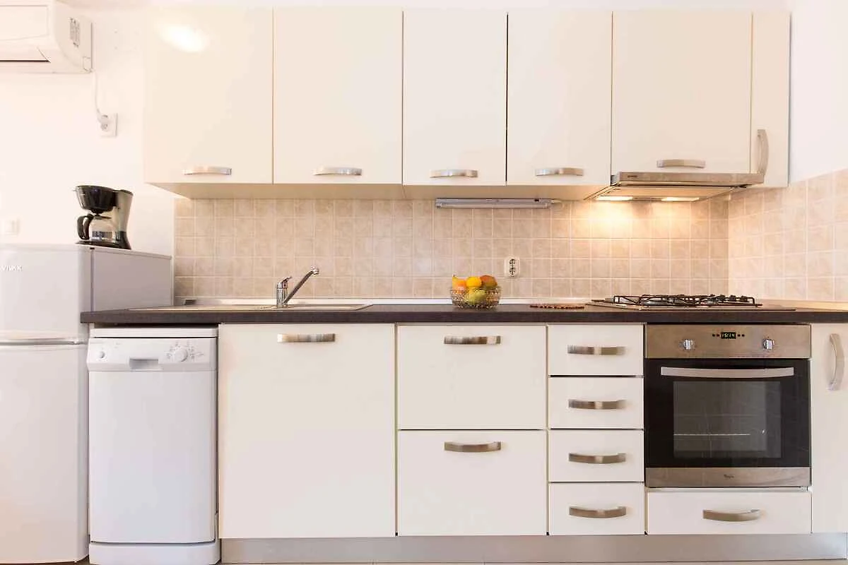 Punat. Die Ferienwohnung befindet sich auf einem offenen Grundstück. Der Vermieter wohnt ständig im Haus, nutzt jedoch einen separaten Eingang. Die Zufahrt erfolgt über eine Nebenstrasse (asphaltiert). Parkplatz (für 1 Pkw) auf dem Grundstück.