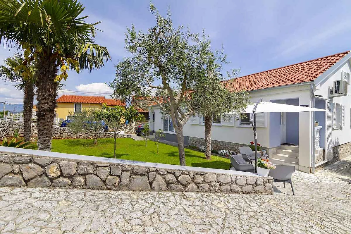 Einkauf 300 m, Restaurant 2 km, Ortszentrum 2 km. Bahnhof, Kino jeweils 50 km in Fluss. Diskothek, Bank jeweils 15 km in Malinska. Arzt, Apotheke jeweils 1500 m in Šilo. Heilschlamm Meline - Soline 2 km, Höhle Biserujka 10 km, Dobrinj 3 km, Crikvenica in der Nähe - Verbindung mit Schnellboot von Stilo, Stadt Krk 20 km, Malinska 12 km, Rijeka 55 km, Flughafen Omisalj 20 km. Im Sommer: Adria 1500 m in Šilo (Strand 2 km in Šilo mit Sand, Kies, Steinen, Felsen und Badeplateaus). Tennis, Angeln, Tauchen, Bootsverleih, Bootsanleger jeweils 2 km in Šilo.