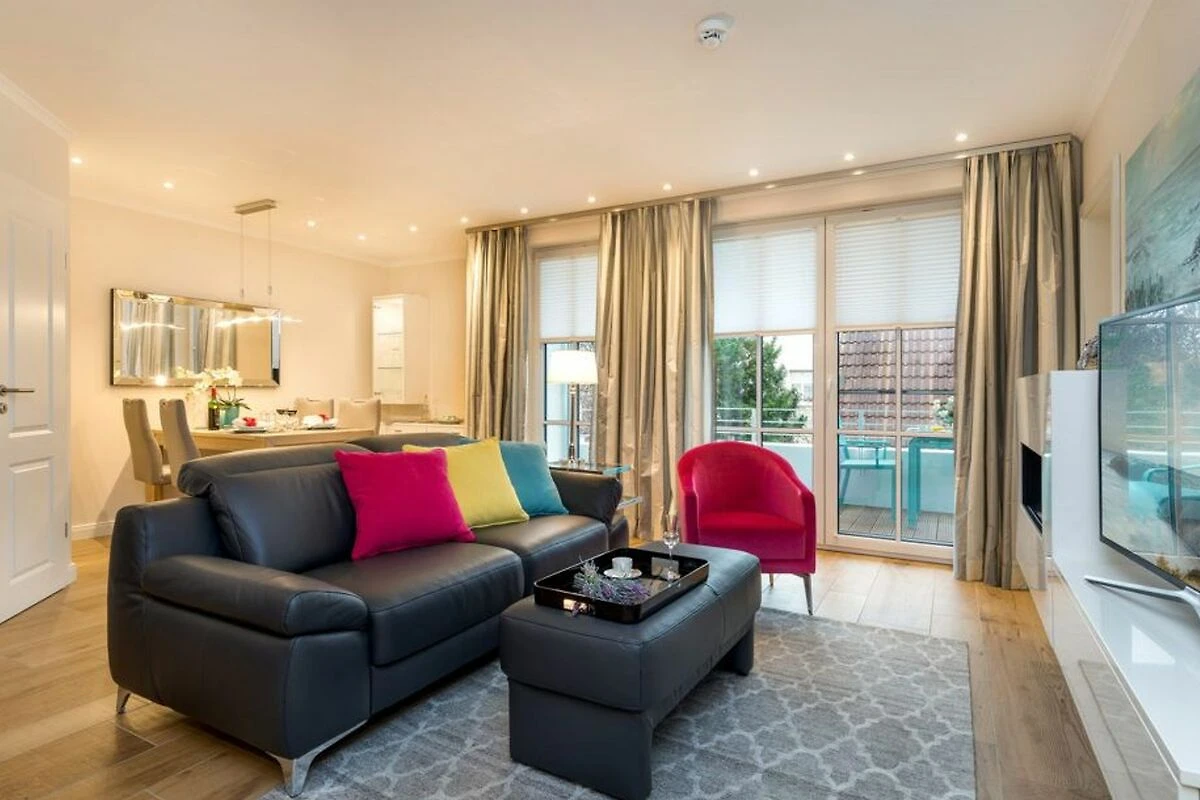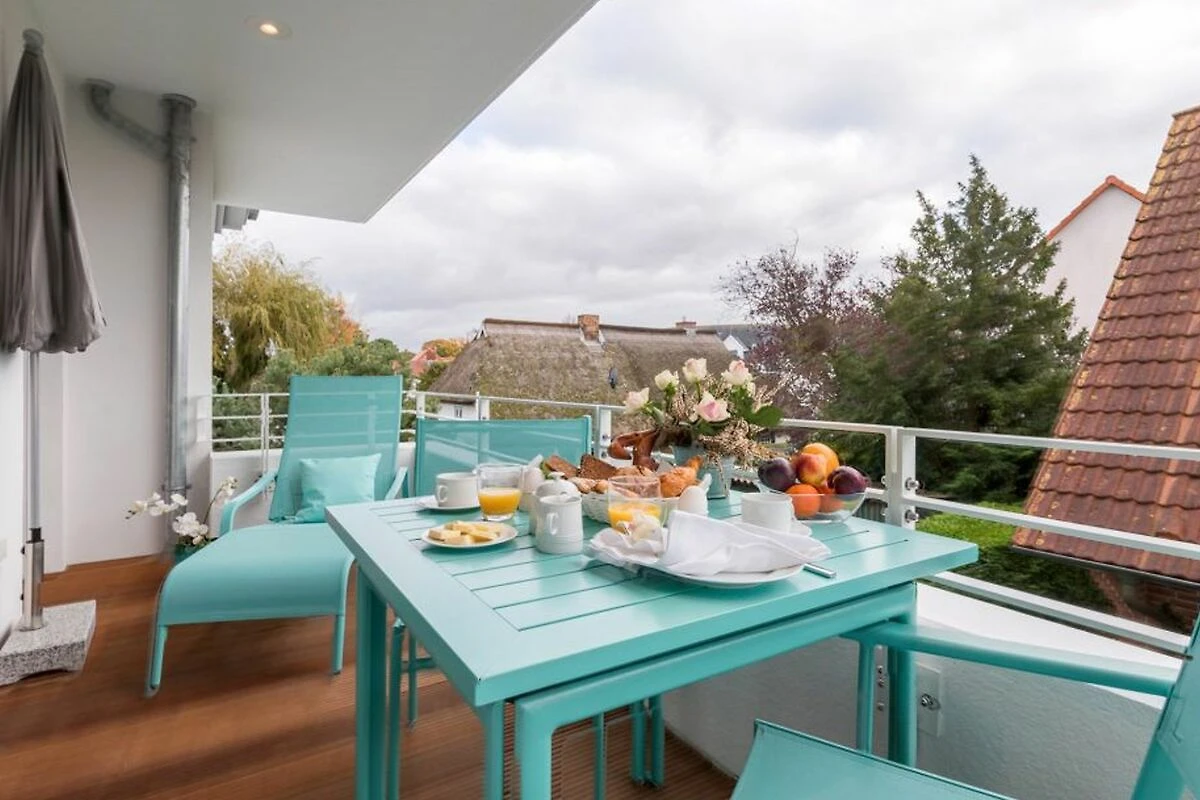 • Balkon: Sonniger Südbalkon mit Designer-Möbeln, ideal zum Entspannen und Geniessen der frischen Ostseeluft.
