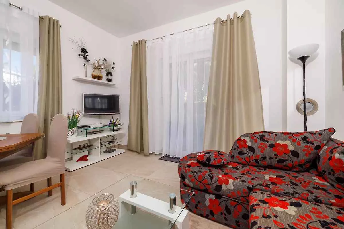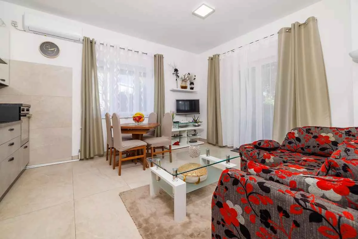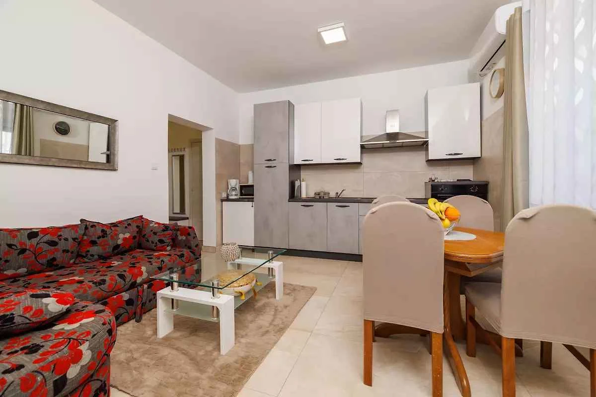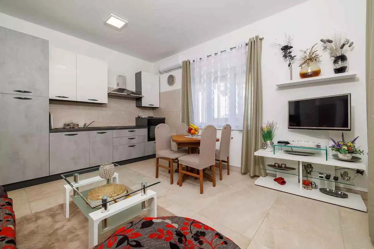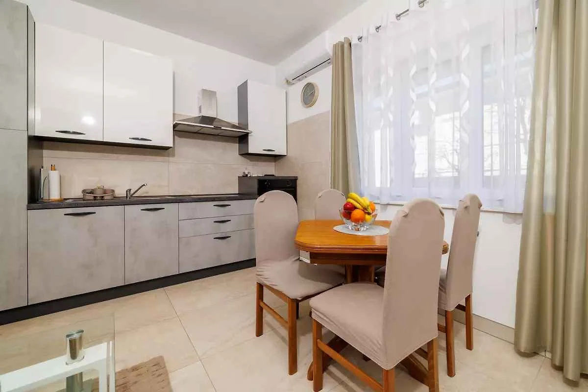 Jadranovo. Die Ferienwohnung befindet sich auf einem Gartengrundstück mit Blumen und Sträuchern. Der Vermieter wohnt ständig im Haus. Im selben Haus befinden sich FerienWohnungen KVA JAD 025 (3 Personen), KVA JAD 026 (3 Personen), KVA JAD 027 (5 Personen) und KVA JAD 028 (5 Personen). Die Zufahrt erfolgt über eine Nebenstrasse (asphaltiert). Parkplatz (für 1 Pkw) auf der Strasse vor dem Haus.