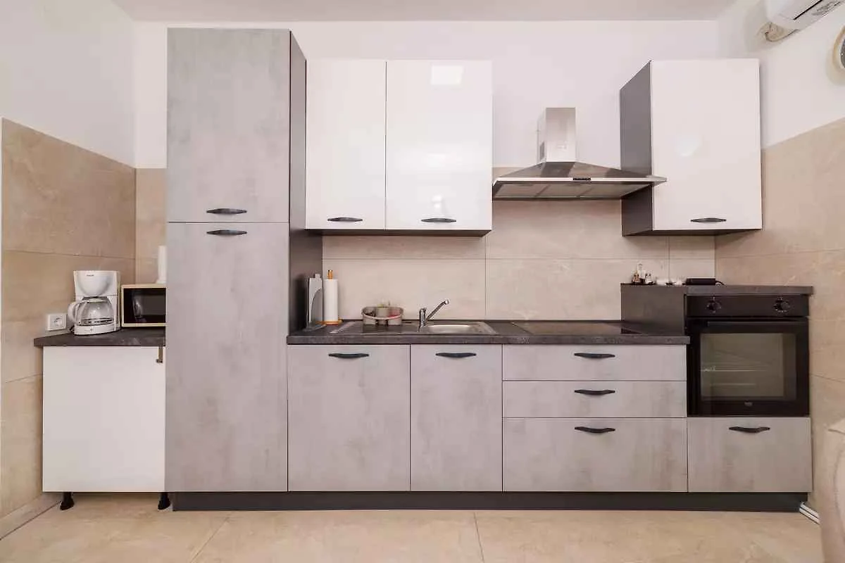 Einkauf 100 m, Restaurant 100 m, Ortszentrum 400 m. Diskothek, Apotheke, Bank jeweils 10 km in Crikvenica. Rijeka: Flughafen 15 km und Bahnhof 35 km. Im Sommer: Adria 15 km in Jadranovo (Strand 6 m in Jadranovo mit Kies, Steinen und Badeplateaus). Minigolf, Tauchen jeweils 8 km in Crikvenica. Bootsanleger in Jadranovo 20 m.