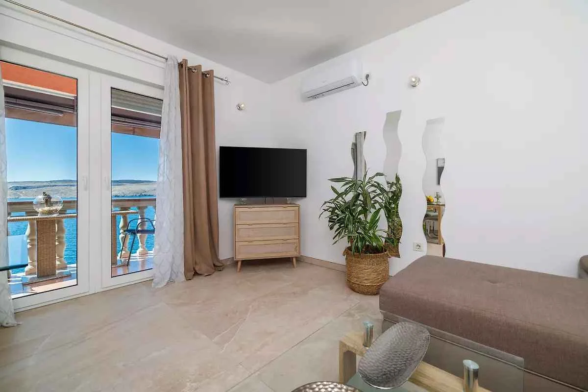 Die Ferienwohnung befindet sich in einem Apartementhaus. Auch wegen des Ausblicks vom Grundstück auf das Meer und der ruhigen und sonnigen Lage am Wasser ist das Domizil beliebt. Zur gemeinsamen Nutzung stehen zur Verfügung: Sonnenschirm und Grillmöglichkeit. Terrasse wird als Durchgang genutzt, Babybett auf Anfrage.